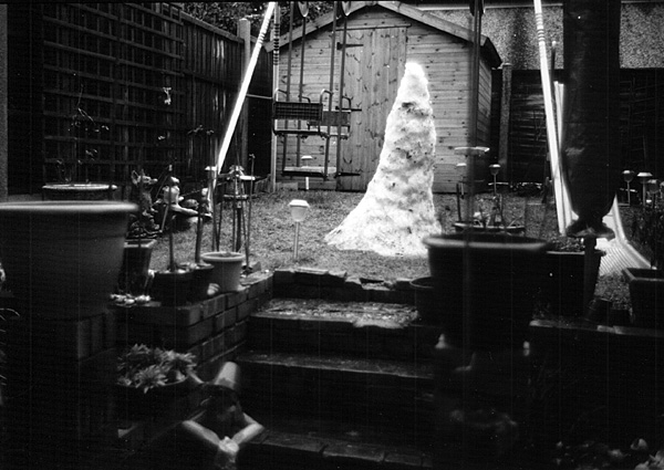 Sad Snowman: my kids made a Snowman in the back garden-- when a thaw came it lost its head and looked 'Sad' -- I took it in half-light with my 1965 Leica M2 loaded with Fuji Across 100 with the 35mm f1.4 Summilux at full aperture .