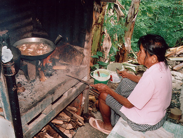Ensi 2: My wifes' Auntie Ensi does not trust the gas stove -- she prefers cooking over a 'camp fire' in the garden ! <br />