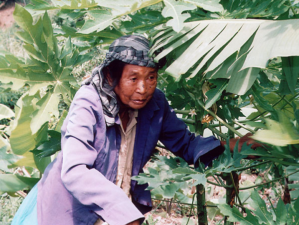 Ensi 1: my wife's Auntie Ensi in the banana grove at the back of my Sister-in-Law's house .<br />
