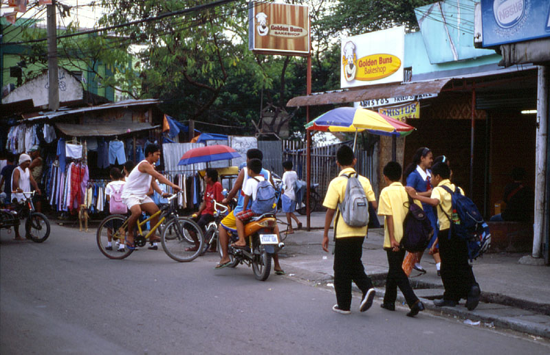 Velvia 02: Inayawan Village, Cebu, Philippines -- Students come home from School .Almpst dark .. 1965 M2, 1966 35mm f1.4 Summilux, Fuji Velvia 50.