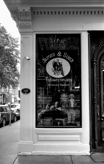 Leica IIIc. 35mm f/3.5 Kentmere 100. Semi-Stand Development. 60 min. Rodinal. Saratoga Springs, NY July 2015. Smoke Shop.