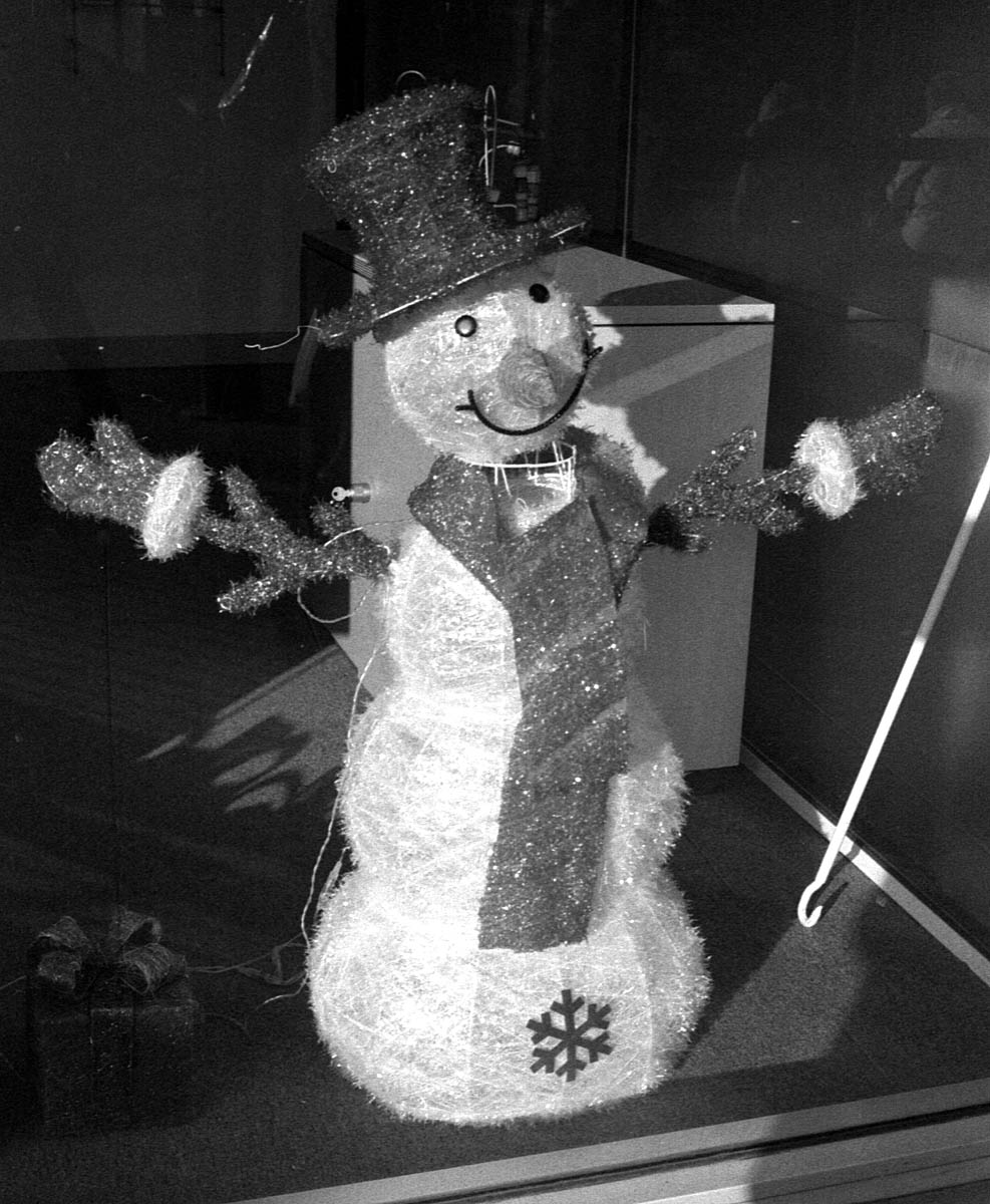 X 700 test : Santa in a shop window in sunshine . X-700 + 35-70mm f4 Minolta Zoom at f11, 02/1999 dated Kodak TMY 400 processed in Promicrol 1+14