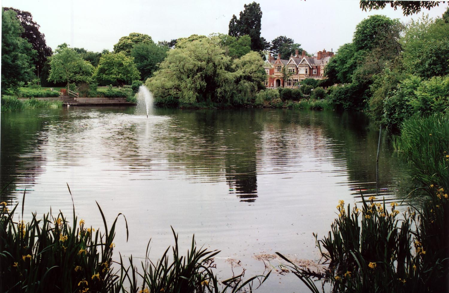 Secret Houses 04.jpg : Bletchley Park -- the lake Minolta X-700 + MC W.Rokkor-SG 28mm f3.5. Outdated Fujicolor 200 scan from print.