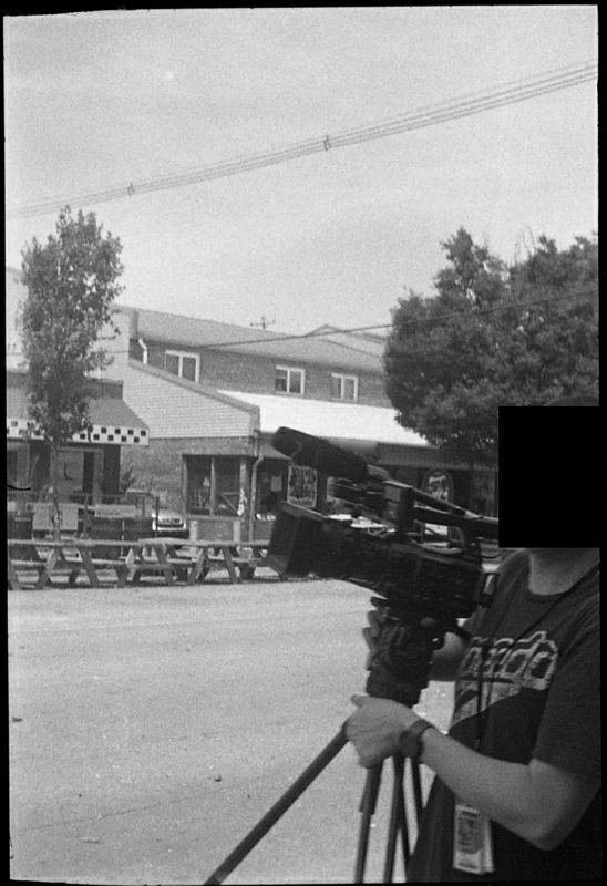 Only way it could have been better would have been a well-placed sprocket hole. He managed to set up quickly enough to get a long 3/4 telephoto shot of me walking away, a bit of b-roll that ended up in the finished piece.