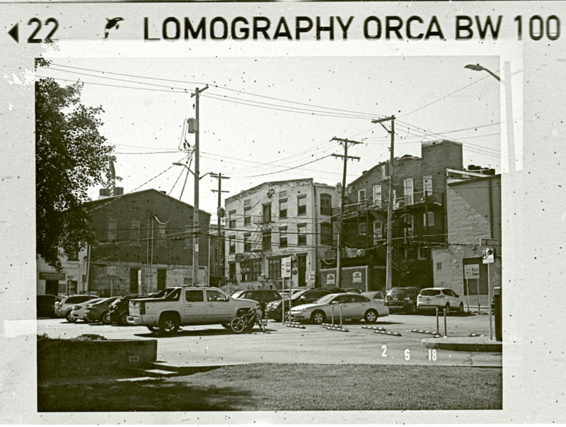 Pinholes galore from Orca 100 this time; the first through a Canon 110ED 20. It might just be this camera, but I had to destroy the cartridge to get the film onto a reel. The film advance ratchets the spool so tightly (or something) I was unable to withdrawal the film from the take-up chamber.