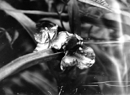 It is ortho film; I posted the spectral response curve (snazzy hat) a bit further up the page. It can be developed by inspection under a red safelight just as Fuji's large format double sided x-ray films. It also has a noticeable UV sensitivity. The stripes/banding on the flower petals below are only visible in UV.