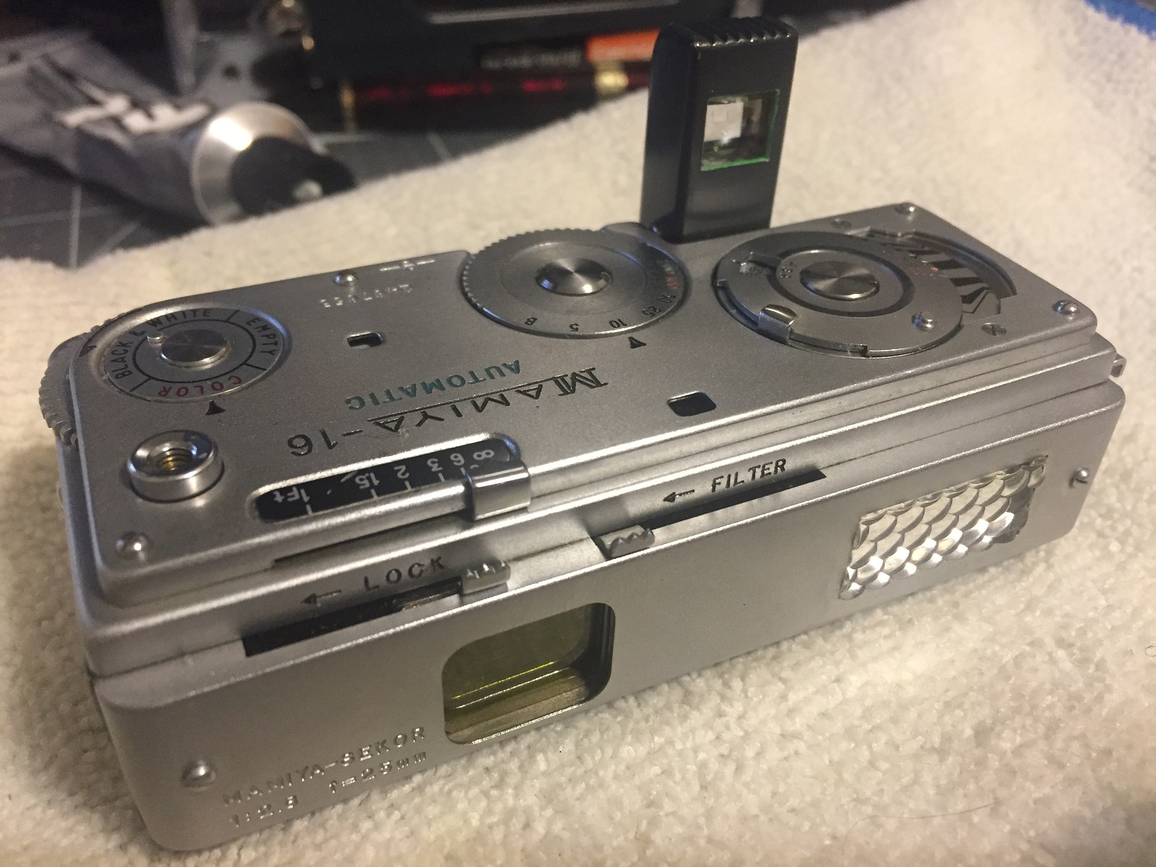 Found a nice Mamiya 16 Automatic camera today at a junk shop. It cleaned up nicely but the meter is dead. No real problem, as it has fully manual controls. Now I have to scrounge a couple of film magazines. I have a TON of Agfa and Ilford 16mm out of date stock I can use and might invest in a slitter later.