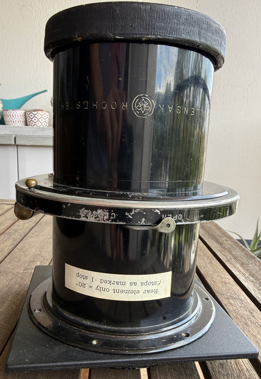Covers 8x10" and you can go larger at portrait distances. If you want to use it for ultra-large formats, remove the front cell and use the rear cell alone as a 20" lens.