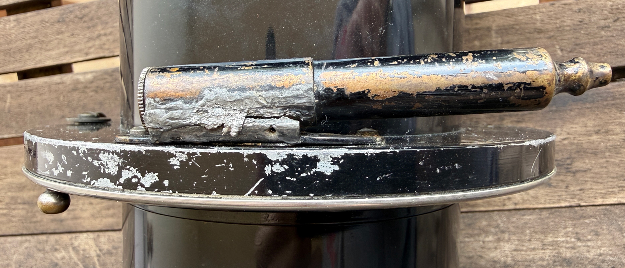 Has minor cosmetic issues like brassing, small specs, and minor cleaning marks. Only significant defect is soldering of the air piston to the shutter, but I've had this lens for 15-20 years and have never had a problem with it.