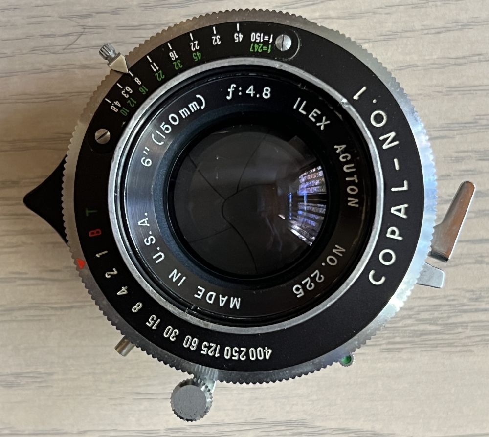 Manny Kiner designed this Ilex-produced lens. It's basically a plasmat and was offered in three focal lengths, all f/4.8 - 150mm, 180mm, and 215mm. The 150 and 180 were sold in Copal 1 shutters, while the 215 is most commonly found in an Ilex 3, although it was also sold in a f/5.6 version in a Copal 1. All three lenses were convertible by removing the front cell; the 150mm converts to a 247mm, and the aperture scales are marked for both focal lengths. It's specified as having a 214mm image circle at f/22 and infinity so covers 4x5 easily or 5x7 with a tiny bit of wiggle room as a 150, I don't know anything about coverage or performance when converted.