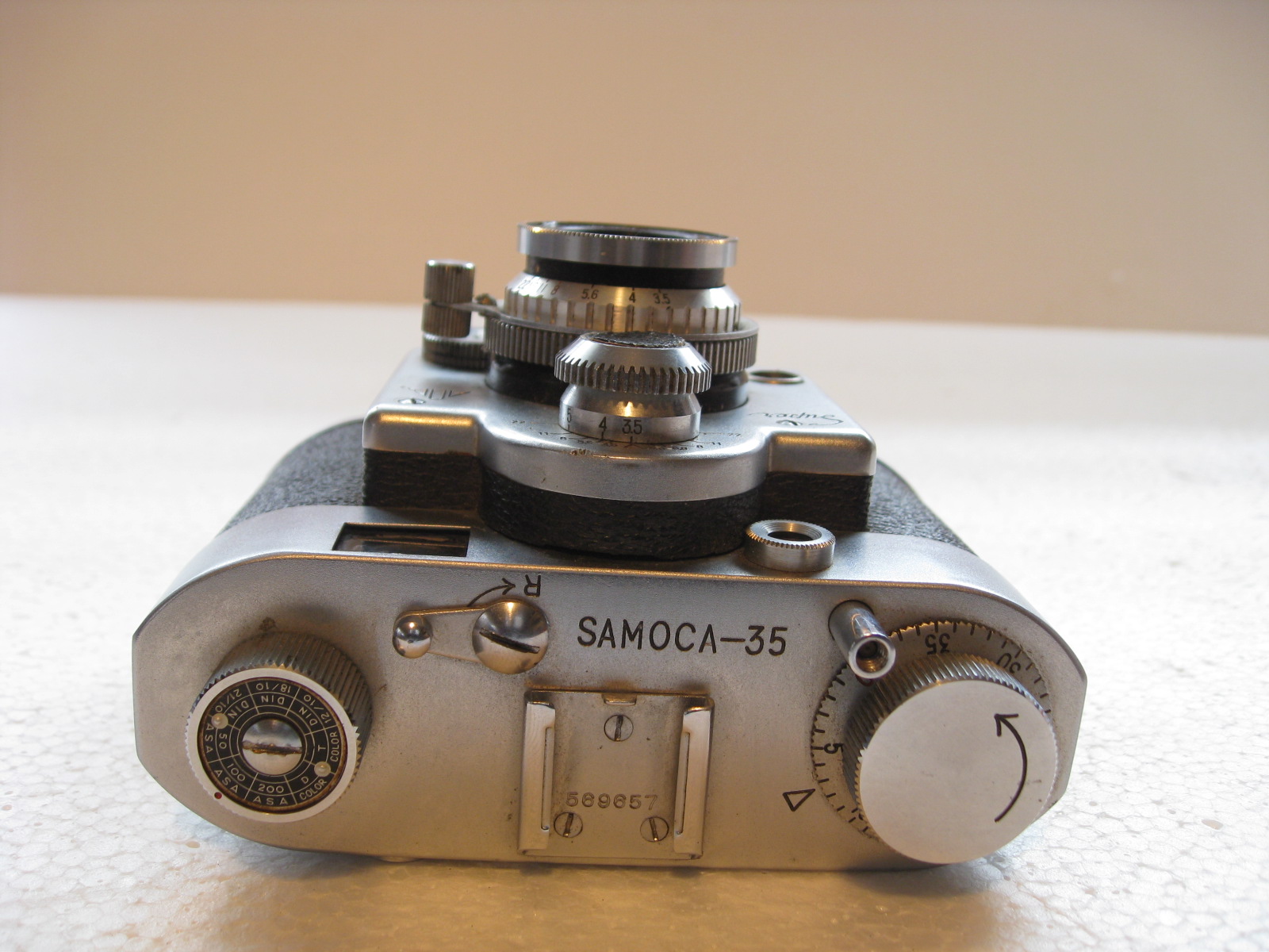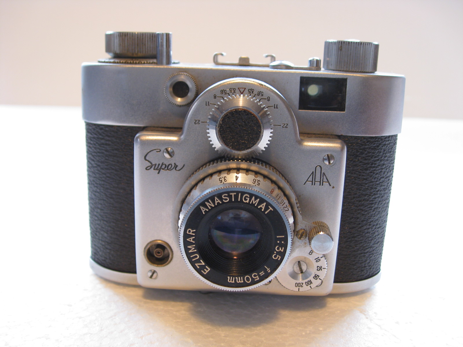DESCRIPTION: 1950’s Samoca 35 Super, Very Compact 35mm Rangefinder Camera. Ezumar Anastigmat 50/3.5 Lens.