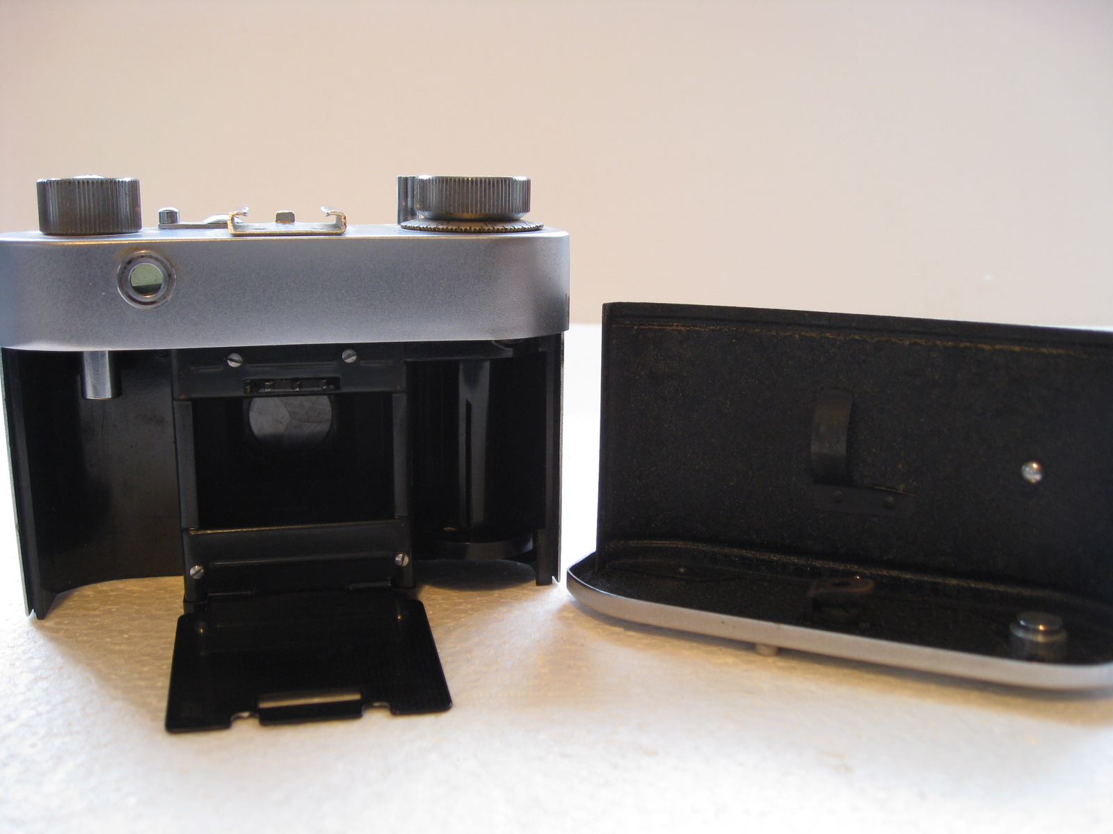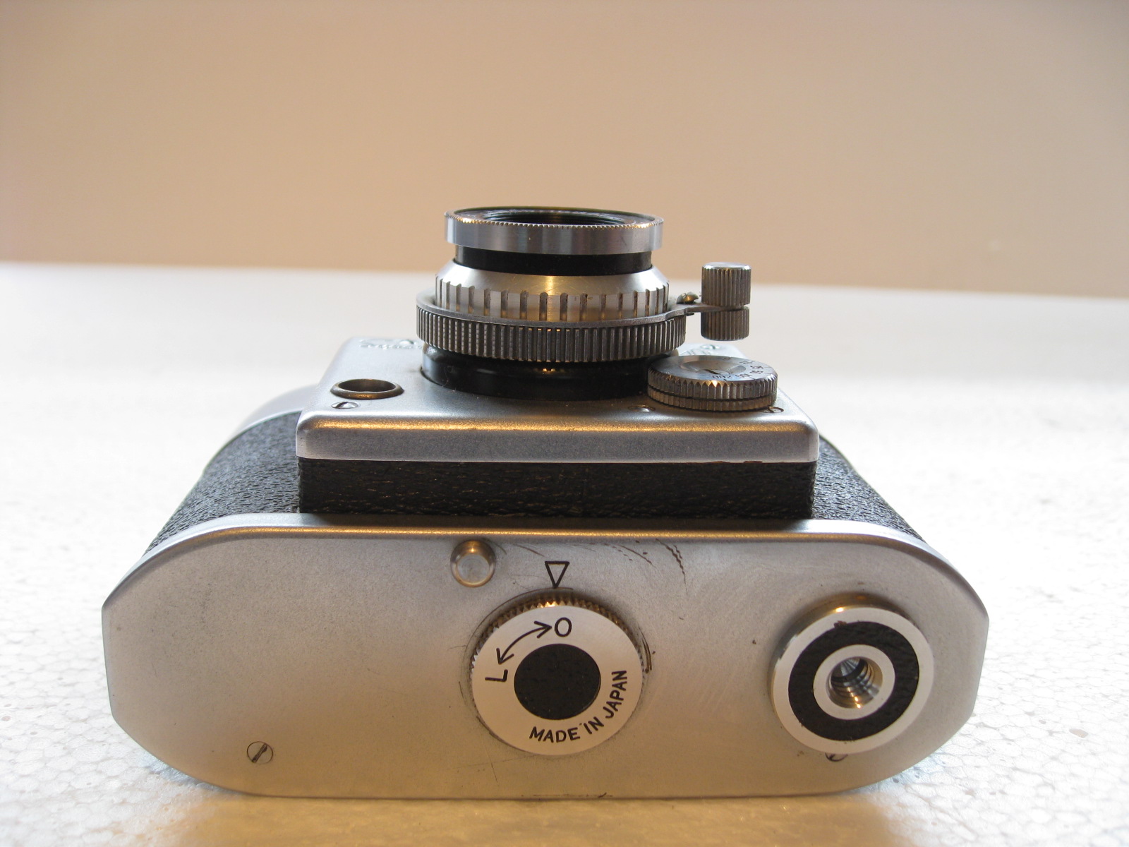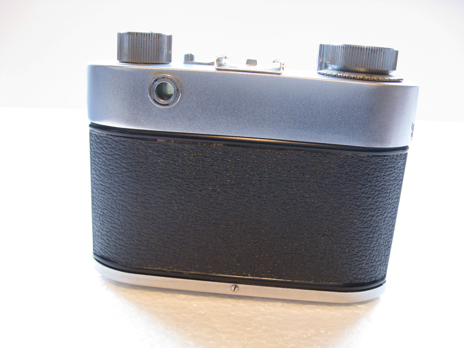CONDITION: Overall very good condition for age, but it will need some TLC to get it to function dependably. Lens is clear, blades are clean and working, rangefinder is pretty clear but the focus lever has limited movement and I don’t see a focus spot, camera was winding and firing in my testing of it but then it decided not to function. I think the winding knob is not syncing up right. You’re buying this knowing it probably needs some service.