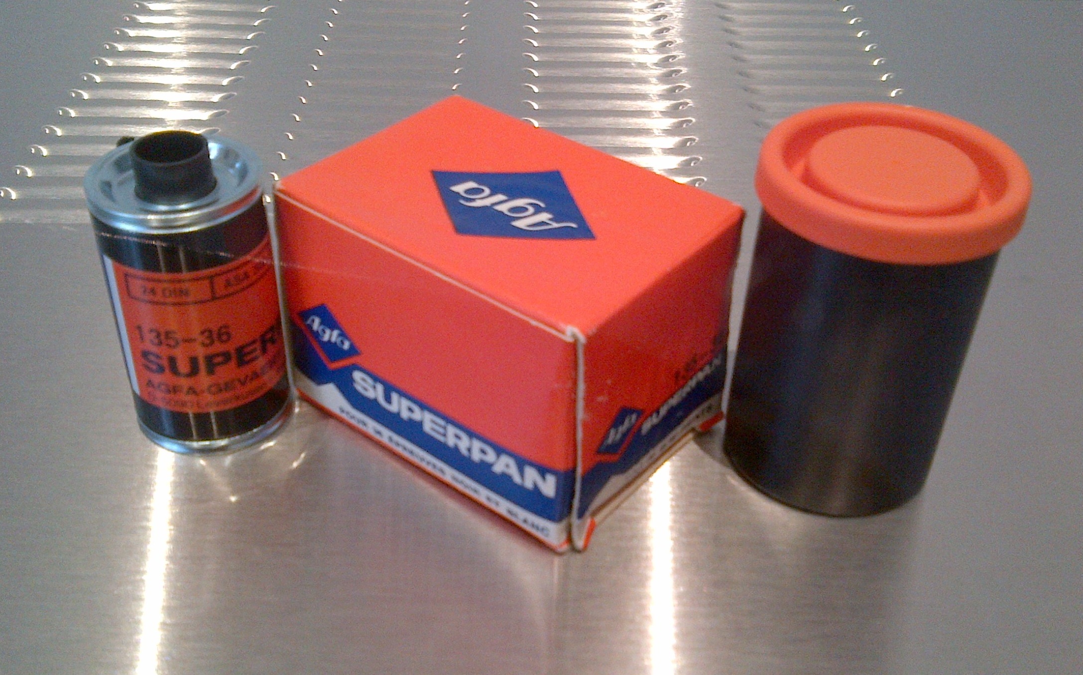 In point of fact, I'm shooting the film at ISO100, as if it were APX100, given its age. I'm getting some base fog but nothing that would hamper printing. I do see some mottling to some frames, so I'm unlikely to use my stock for any photos that are very important to me. But it's a joy to see how well made the Agfa cassettes are, and those orange boxes... Is it just a coincidence that I like orange and black Harleys?