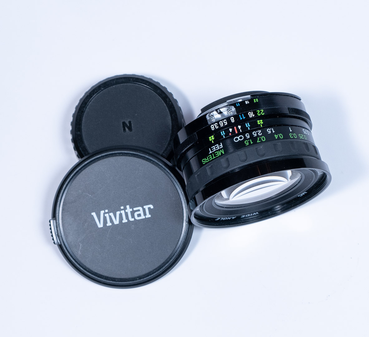 This lens is in super nice condition and seems to be fairly sought after, for a Vivitar lens. The glass is super clean, no fungus or haze, and the cosmetic condition is really nice. $75