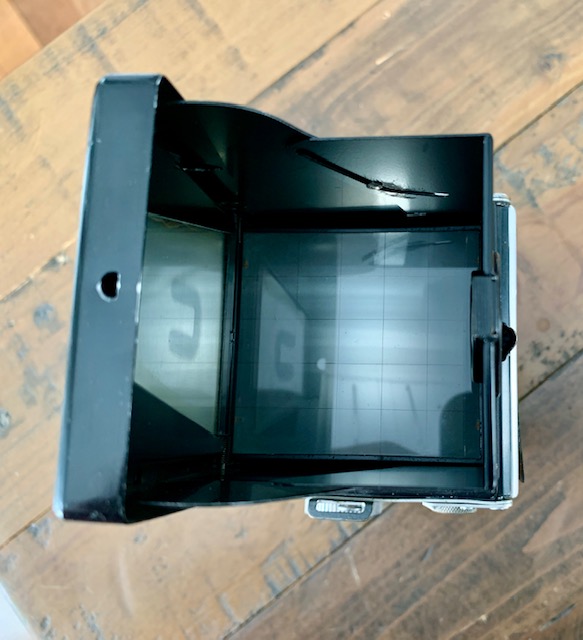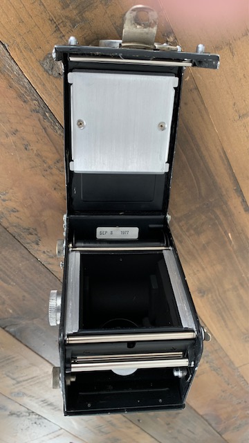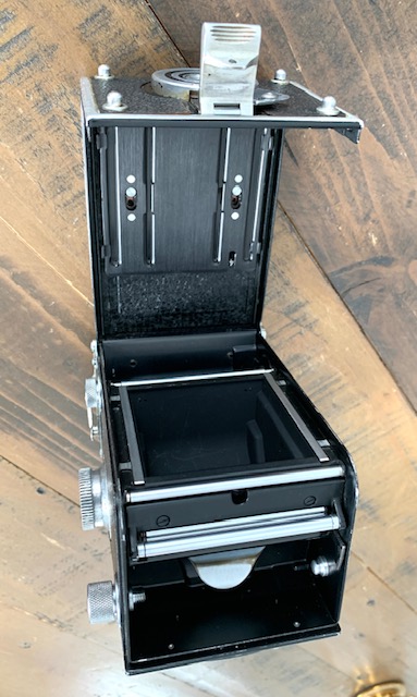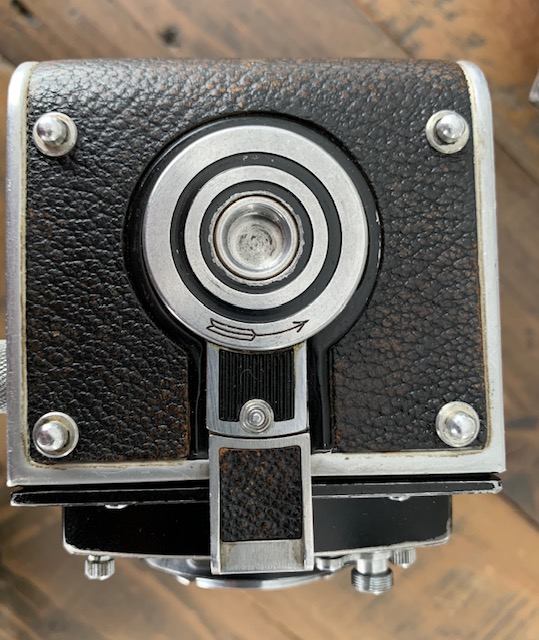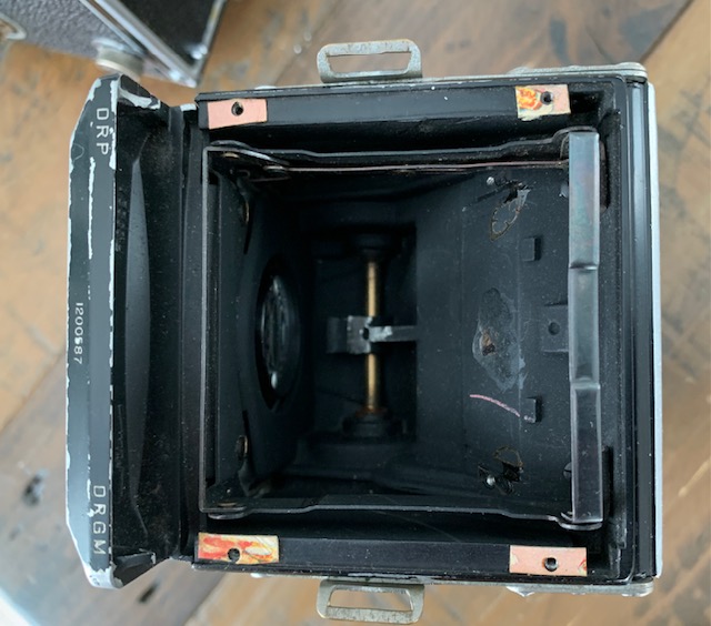 The other camera is missing the mirror and focus screen and the rear taking lens. Taking front element has some mottling in the coating and the viewing lens is clear. I ran a roll of film through it and wind mechanism works. Shutter sticks on 1/5 and slower. B works.