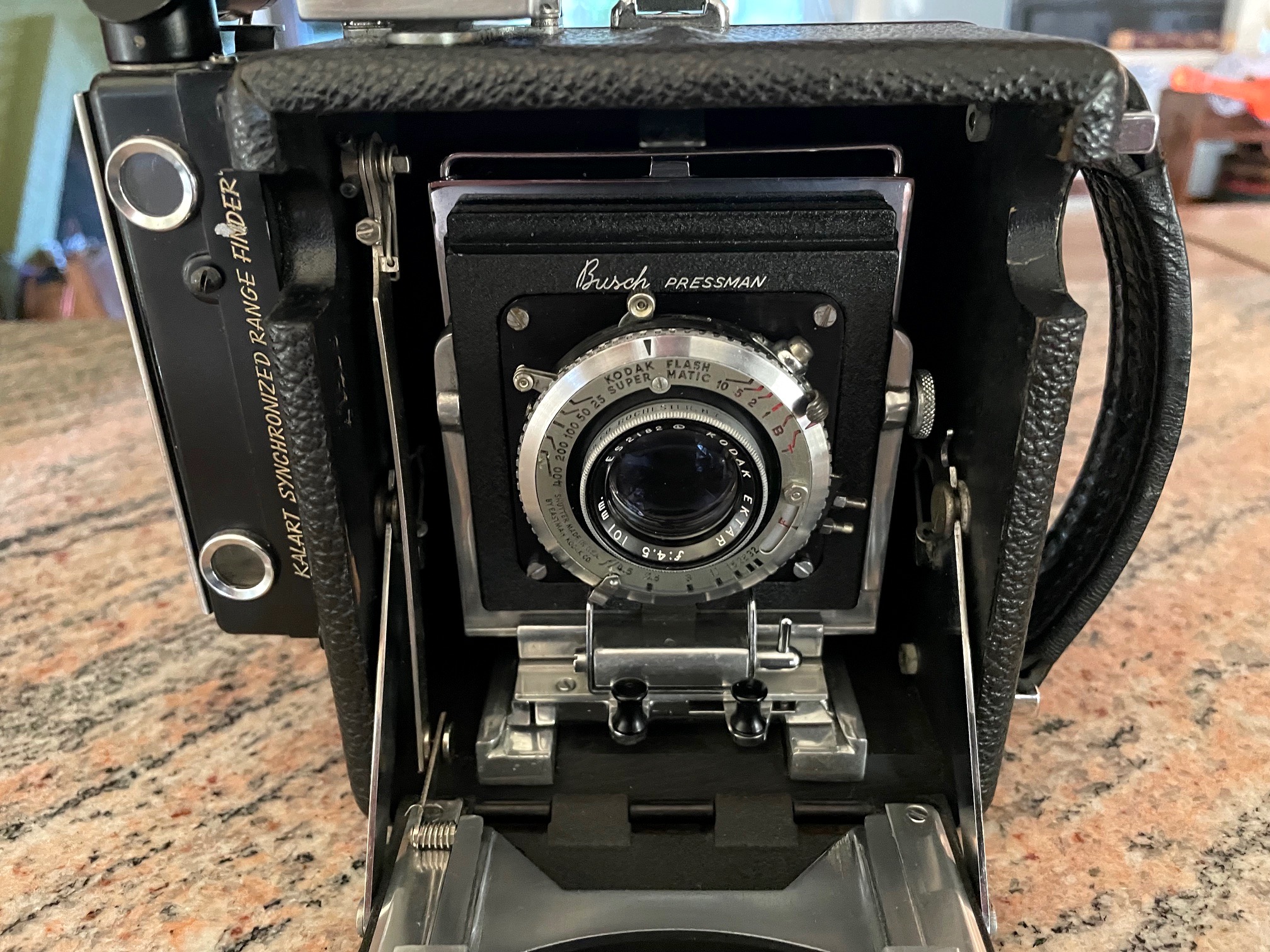 and 101mm f/4.5 Kodak Ektar Lens in Kodak Flash Supermatic Shutter.