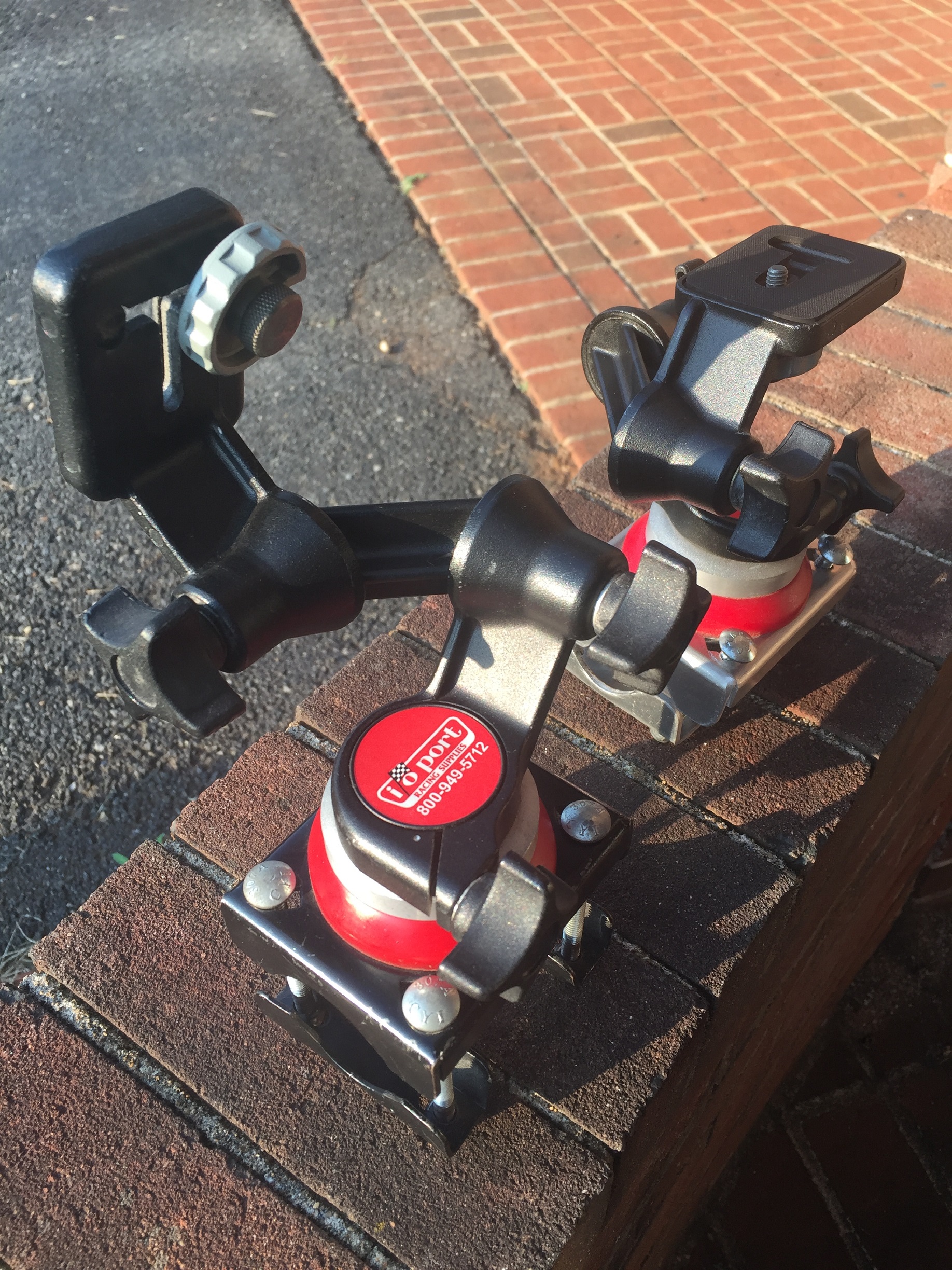 2 used I/O Port CM1-2 camera mounts in good used condition. They do show some signs of wear on the clamps, but not so much on the tripod heads themselves.