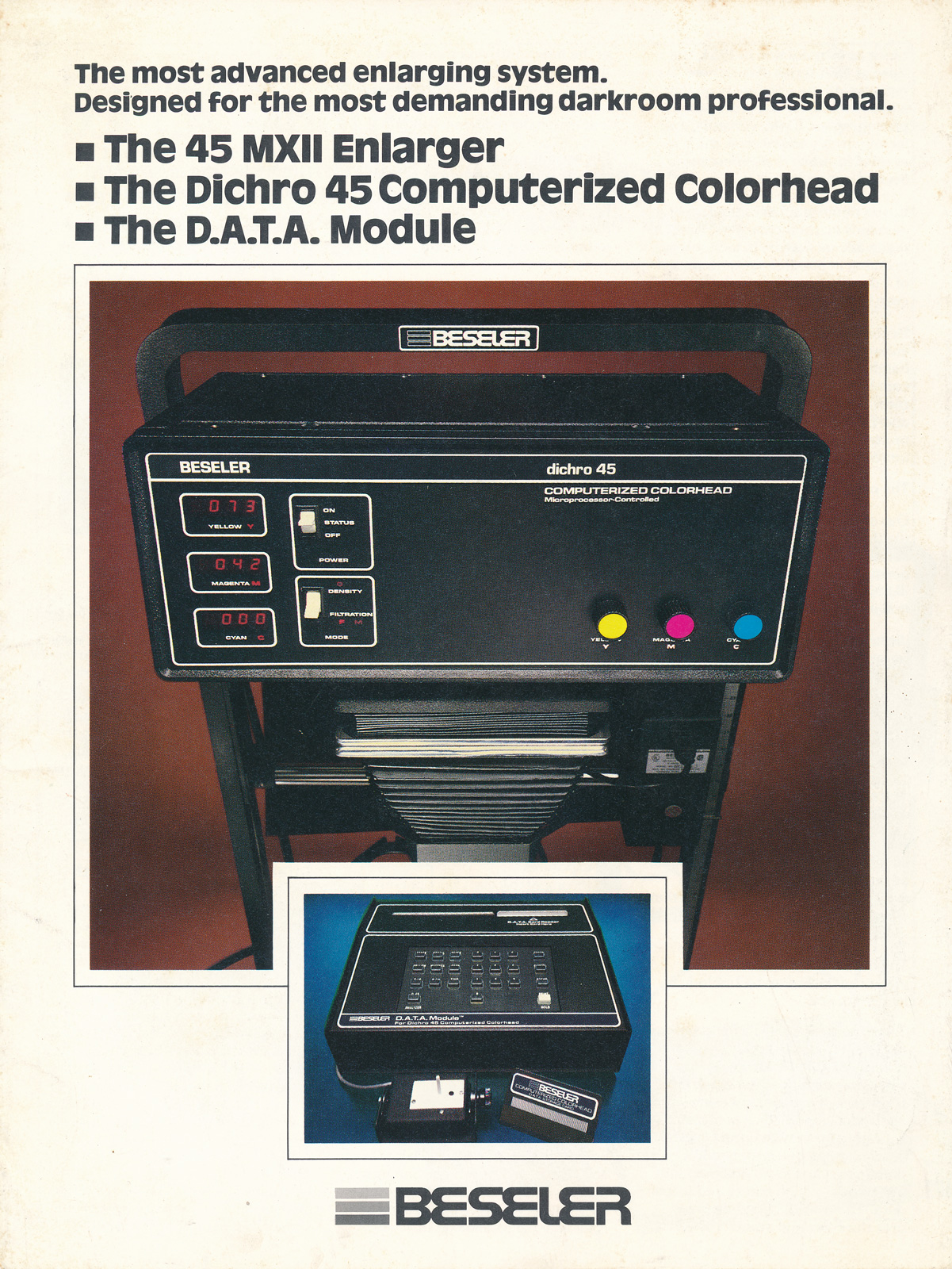 16) The Beseler 45 MXII enlarger, the dichro 45 computerized colorhead, the D.A.T.A. module, undated.