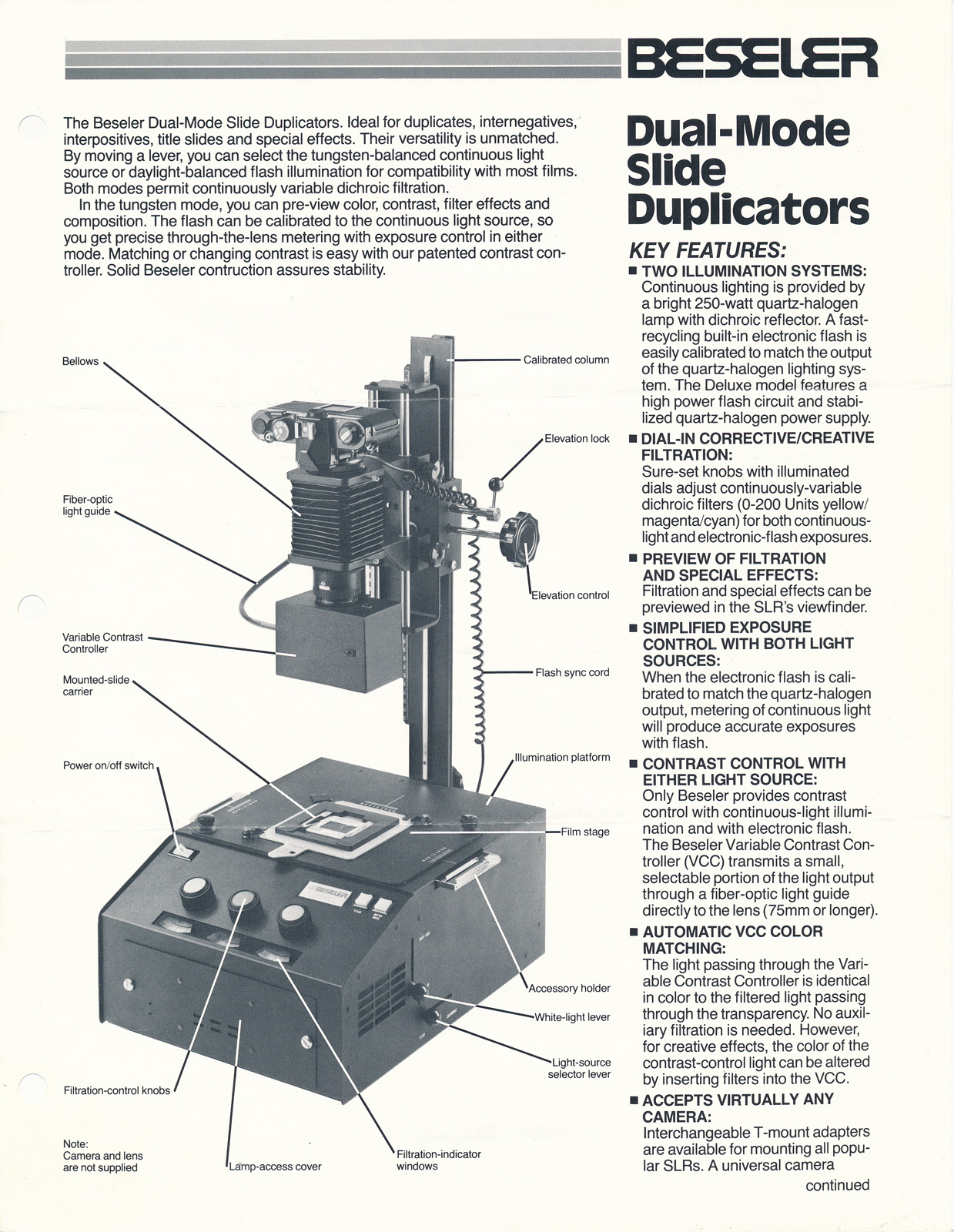 17) Beseler dual-mode slide duplicators, dated 1990. 2 copies.
