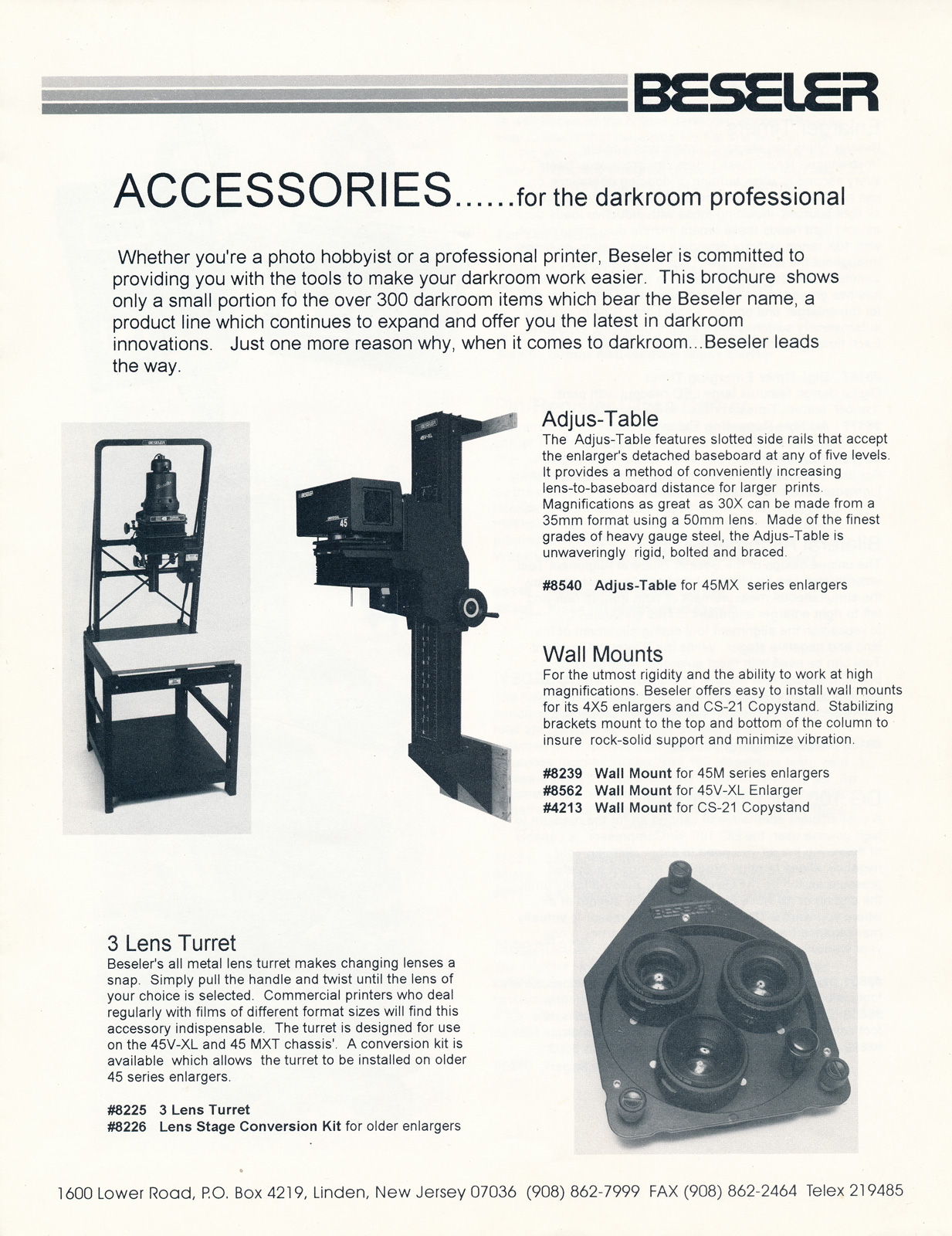 19) Beseler accessories for the darkroom professional, dated 1993.