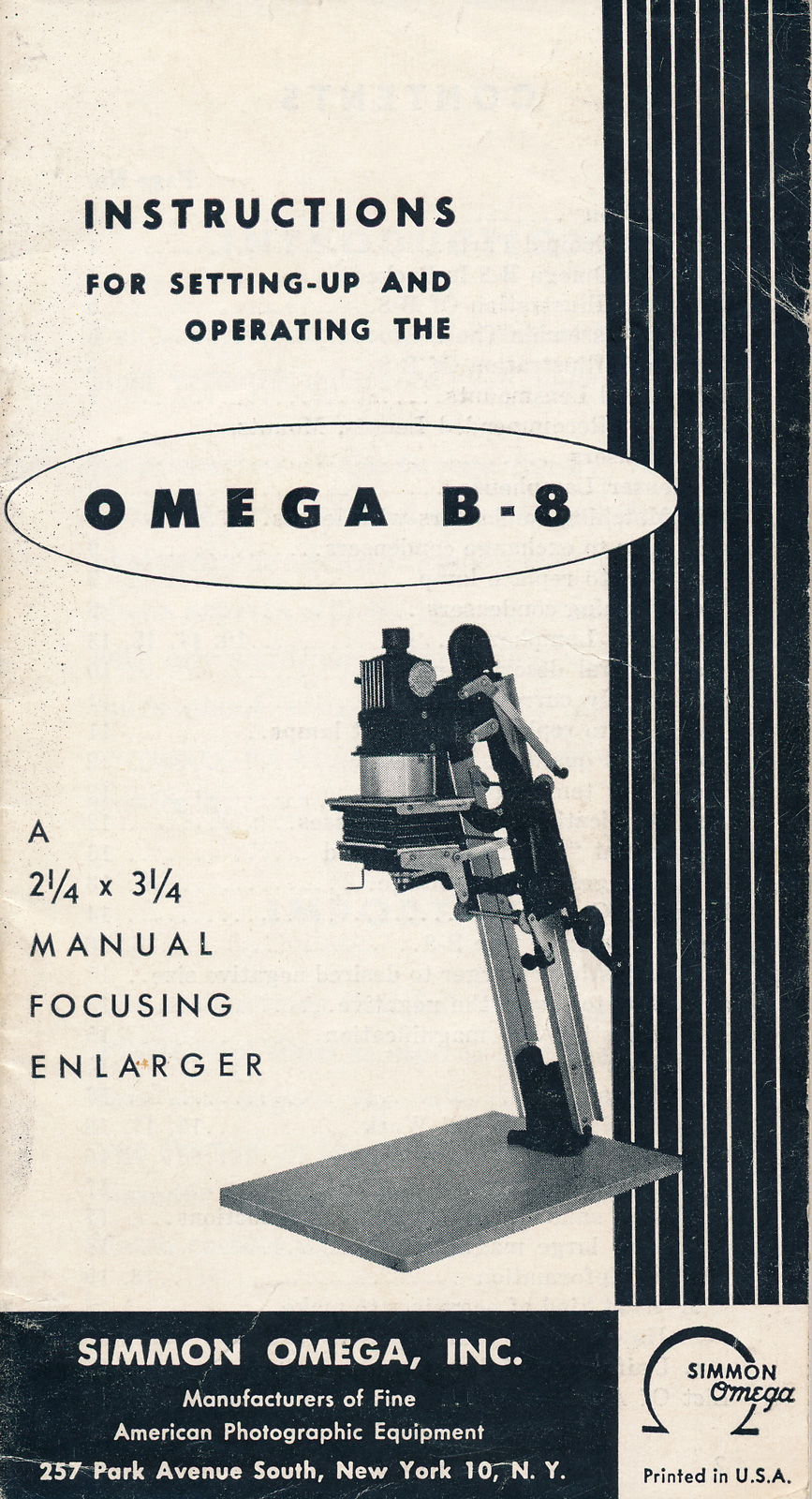 8) Instructions for setting up and operating the Omega B-8 enlarger, November, 1961.