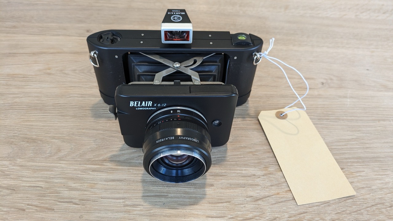 $225 For sale a complete set of Lomo Belair X 6x12 panoramic camera set with additional glass Beliairgon 114/8 glass lens. The set is complete with its original 6x6, 6x9, and 6x12 masks, body cap, two original lenses (58mm and 90mm), and one very hard to find glass lens Belairgon 114/8 lens. Every lens has its own dedicated viewfinder. Film tested and working well.