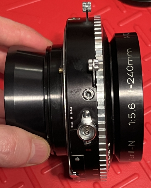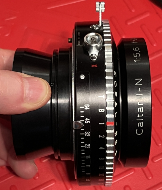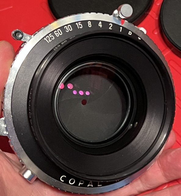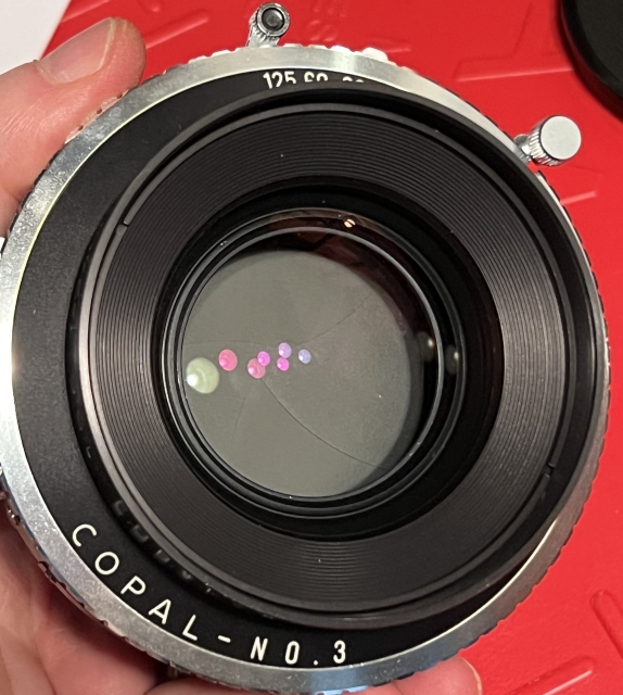 The Caltar II-N line was the Calumet house-brand version of the Apo Sironar N line and came into being after Calumet switched suppliers from Schneider to Rodenstock. This 240 is in excellent condition with no obvious issues. The Copal 3 shutters works well and sounds appropriate at all speeds. The lens takes 77mm filters and comes with a Caltar rear cap, a Kaiser front cap, and the spacer and retaining ring set for mounting on a lensboard. Rodenstock specified the f/22 image circle as 350mm, giving a bit of movement for this slightly wide lens on 8x10/7x11/5x12.