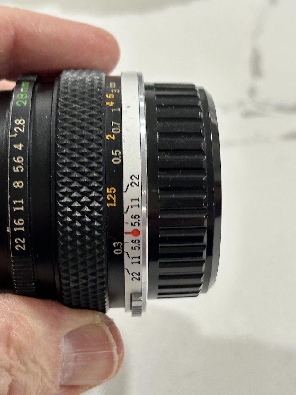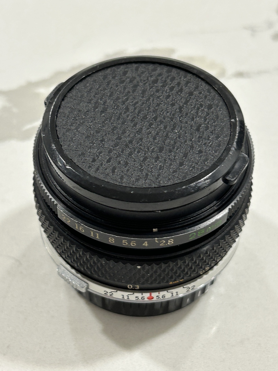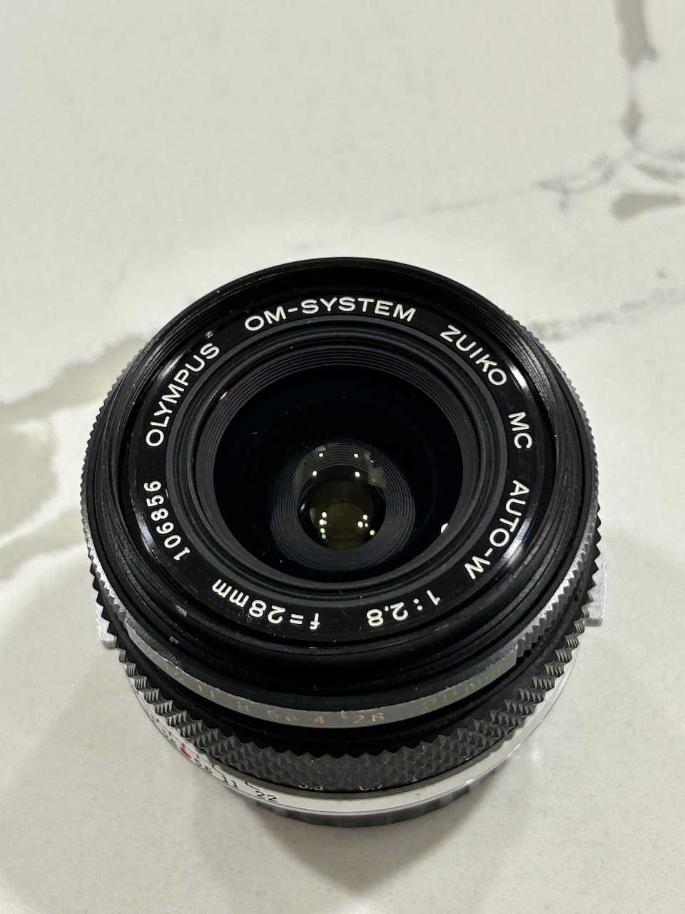 I am selling a 28mm F2.8 Zuiko lens in Olympus OM mount. The lens has clean clear glass with no defects. The controls are all proper and the iris action is "snappy". The overall condition is excellent. This is really a beautiful lens and well-regarded for its outstanding image quality. Of course it is also unusually compact and light for a 35mm system lens as with most Olympus OM lenses. Sold as shown with aftermarket lens caps.