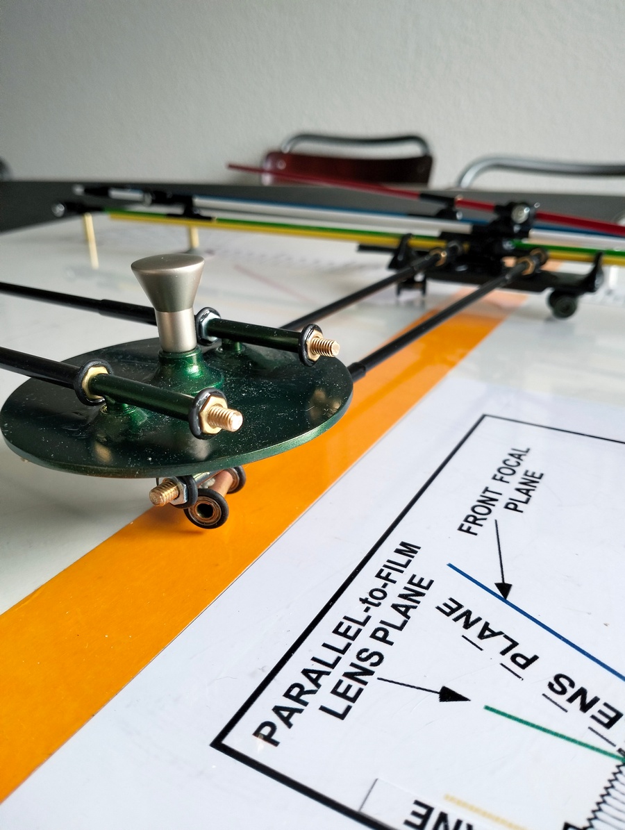 For practical reasons, when determining the specifications of the model, I limited myself to a few things that are most essential to me. Moving the film plane towards or away from the lens is indeed one of them. Furthermore, being able to accurately read the values of α, J, φ and the distance between the film plane and the lens on a scale was essential to me. The whole experiment was educational for me to do. And that was what I had hoped for.
