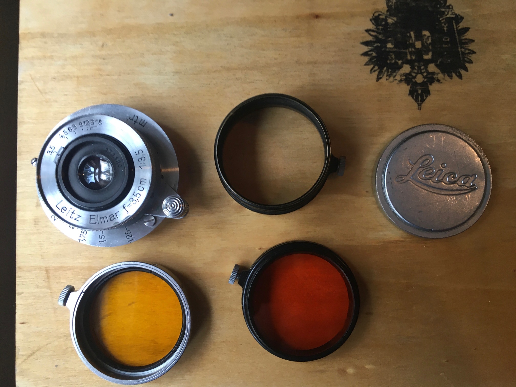 SOLD OFF FORUM FS: Elmar 35mm f 3.5 LTM (1933) with accessories. A36 filters with set-screws yellow & orange. Black FISON lens hood w/ set-screw (5cm but does not vignette). Front and rear lens caps. Fotodiox LTM-M adapter. (cameras not included...). For sale is my Elmar 35mm. (I've gone to the black paint over brass side). It's a tiny lens which works well on early Leica as well as on the M and CL. Focuses smoothly and has clear glass. Beautiful contrast and sharpness stopped down...as the two 11"x14" prints may suggest.