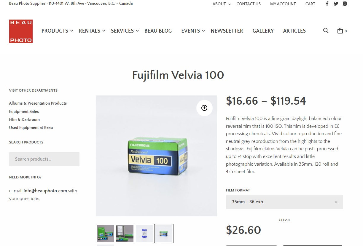I may be an aged hobbyist, but I am not exactly sure because I don't how old you have to be to be aged. I am not whining about the price of Velvia because I haven't shot slides in decades, and when I did, I shot mostly Kodachrome 25, so I am really not a potential Velvia customer. I am curious though about how much young film enthusiasts would be willing to pay to shoot a roll of Velvia. If it's $34/roll and you add in processing, mounts and scans, it seems like $50/roll is a fair cost estimate. Are young film enthusiasts ready, willing, and able to pay $50/roll to shoot Velvia and, if so, how many rolls of Velvia would they shoot a year. Is that going to be enough to sustain production? I am not in touch with young film enthusiasts very often so I don't know. I was taking a course at my community college a few years ago and the students were expressing concern about $5.99/roll for black and white film. Maybe that's just a different demographic though. Speaking of demographics, it might be interesting to examine the demographics of young film enthusiasts.