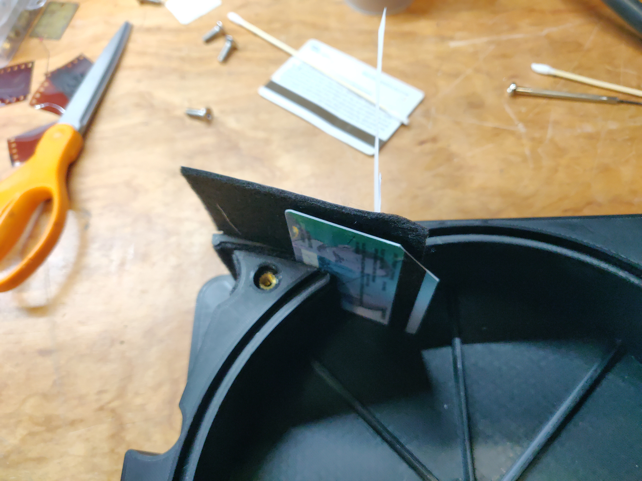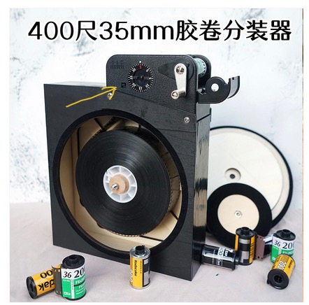 I looked into getting such a loader printed by a contact with a resin printer. But I was impatient to use my first 400ft roll of 5222 and re-spooled it by hand, using a couple of rods fixed into an old enlarger baseboard as spigots (x2) and roll-size gauge (x1), with a thin elastic band to avoid the larger roll spilling. I used a 3” length of square bar from a door handle to twiddle the smaller core. It was all surprisingly easy. Afterwards I wondered how many more times in my life I was likely to do have to do this. Probably fewer than 6 times - who can say? So I decided anything fancier was unnecessary, for me.