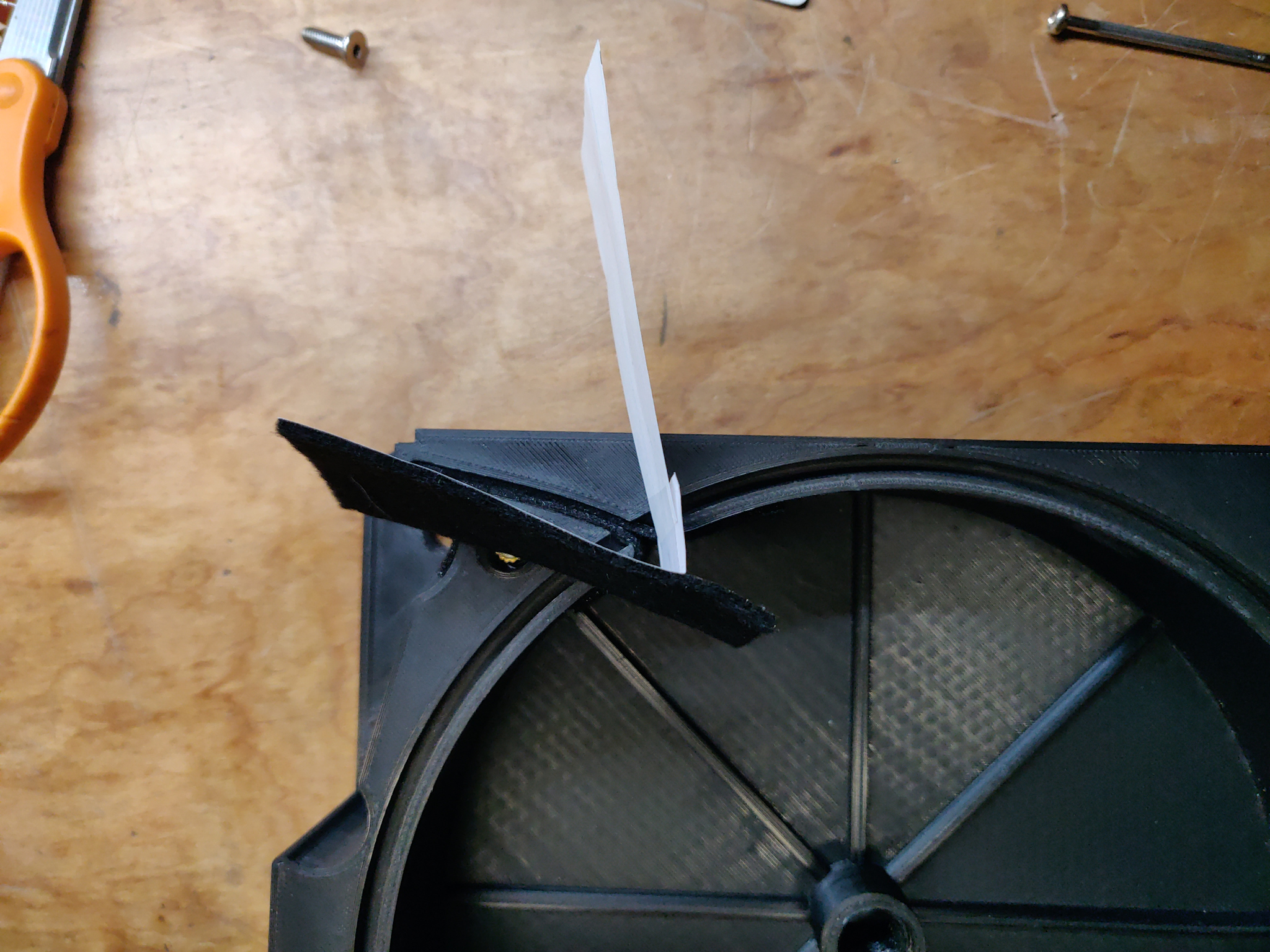 Save the backing paper and place it on the felt side of the second felt strip. This will help get it into the slot