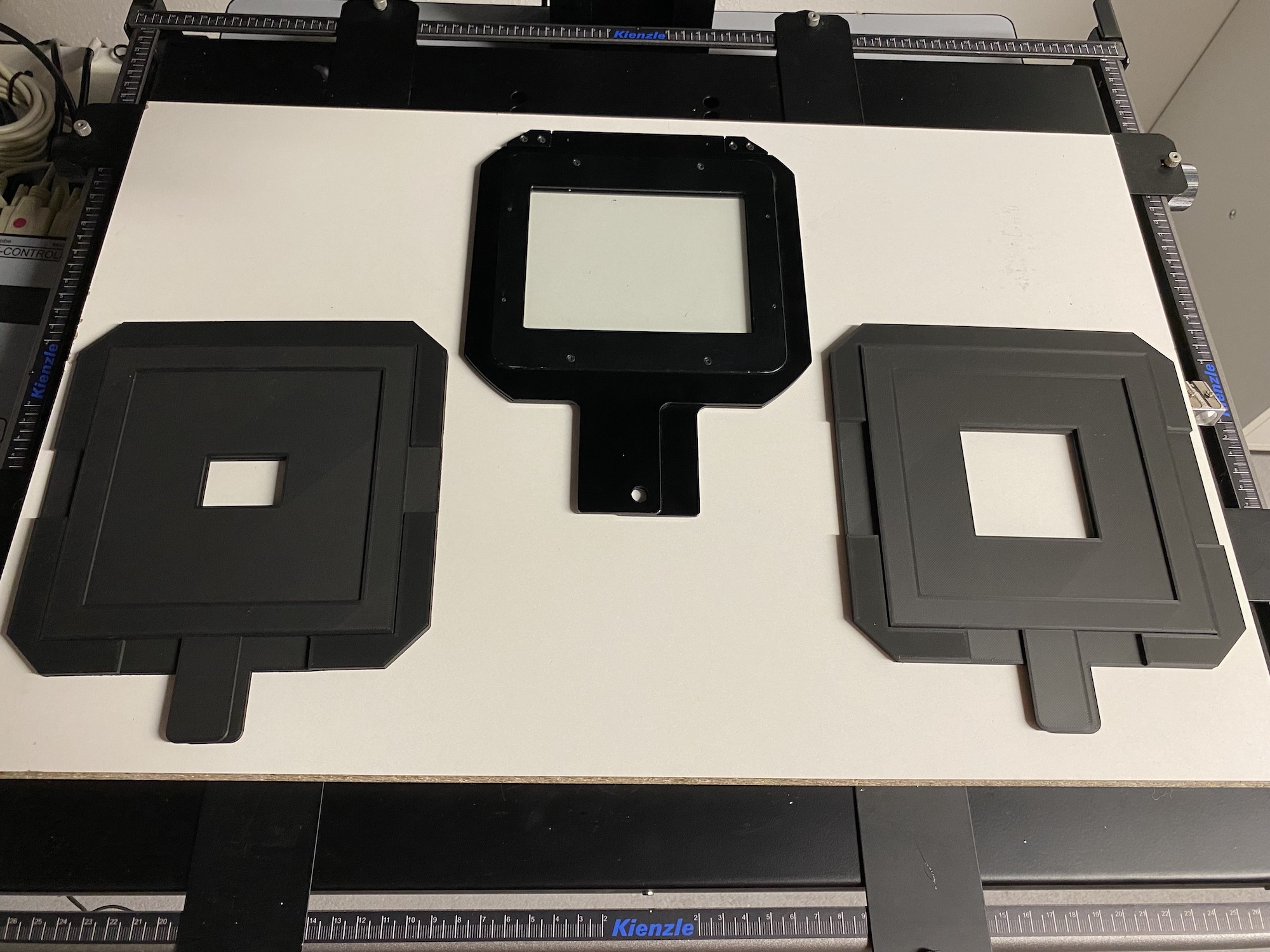 Since about a year I also have a 3d printer in my basement (Creality Ender 5 pro) and decided that I will make my own carrier. I took all measures of the 4x5 carrier and made a design in Fusion 360. It is adjustable for all film sizes, I personally have printed it for 35 mm (24x36), 6x6 and 6x7 by now. Works perfectly