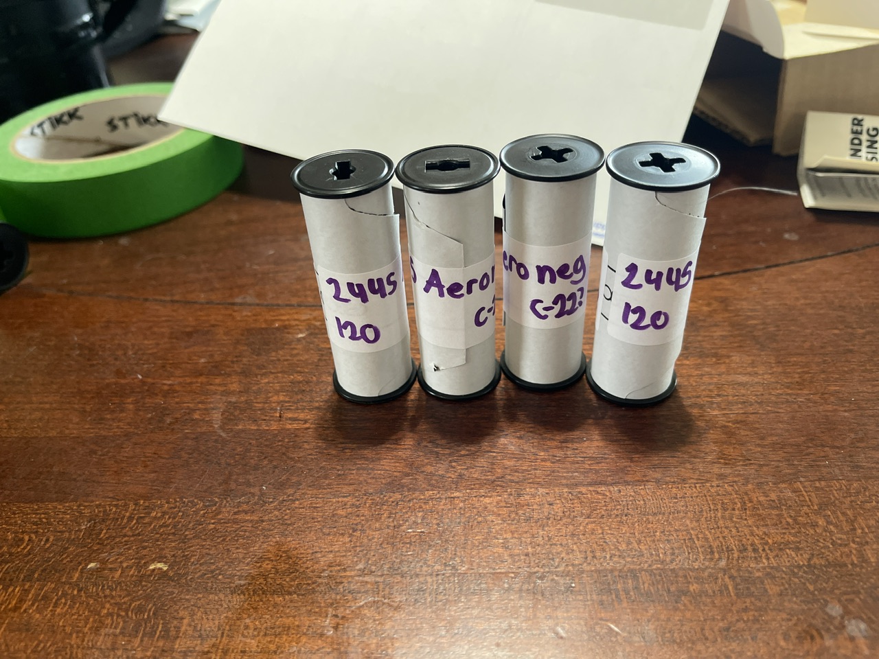 Giving away some old Kodak color areal film 2445, I don’t know how it’s been stored or what it looks like, can’t find any info on it online easily. I got it from someone that said C-41 strips the emulsion off and I did confirm this, so I don’t know how to process it. B&W leaves a very brown base I imagine is hard to scan. I wanted to use the 70mm cassette it came in but I felt bad trashing the film so I rolled it into 120.