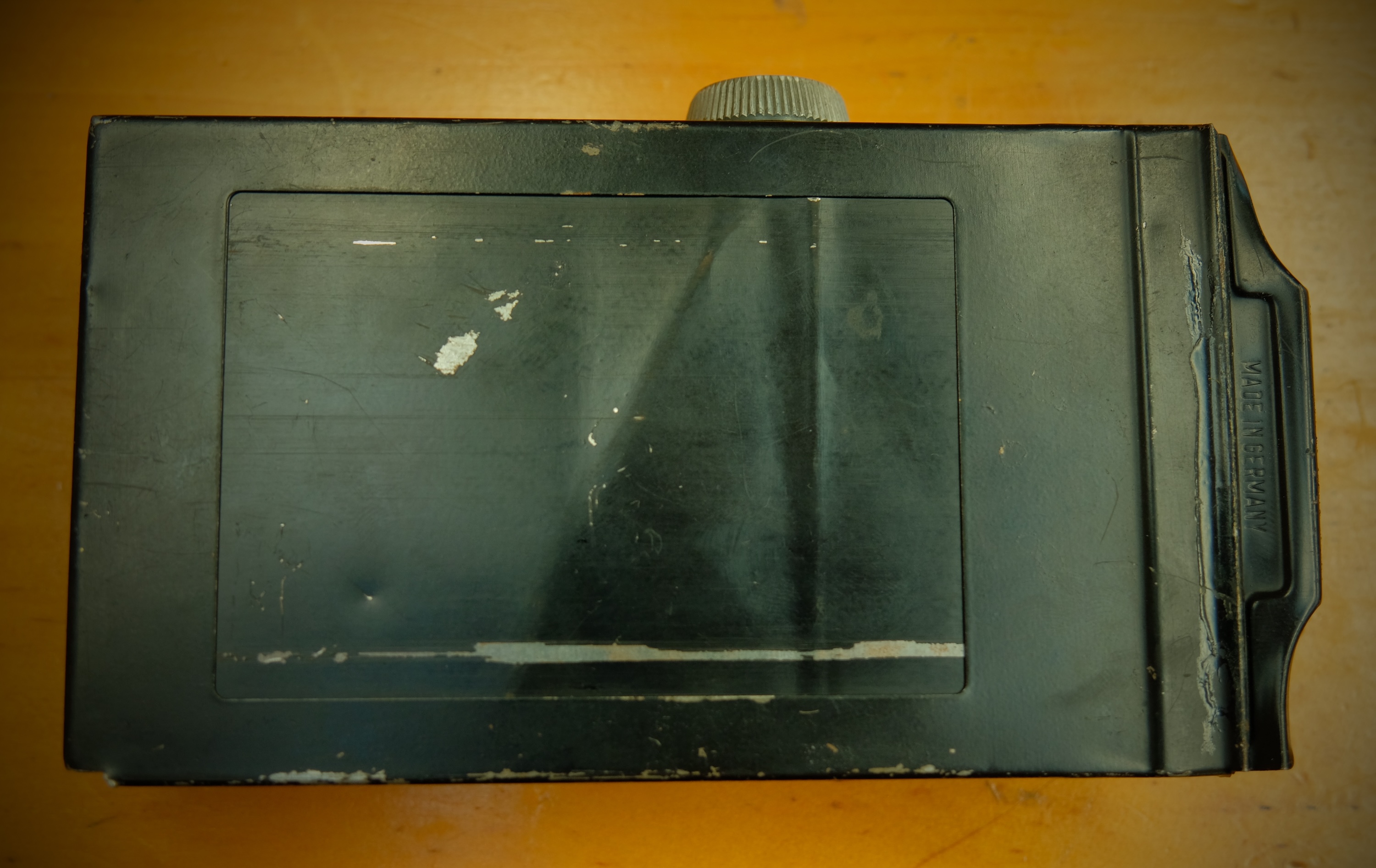 4. Rada 6x9 film back with numbered film advance, for use on Plaubel Makinas and some 6x9 view cameras. This version lets you wind on to the next frame without looking for numbers in a window, although there's still a window if you feel the urge. Asking $50 + shipping. SOLD