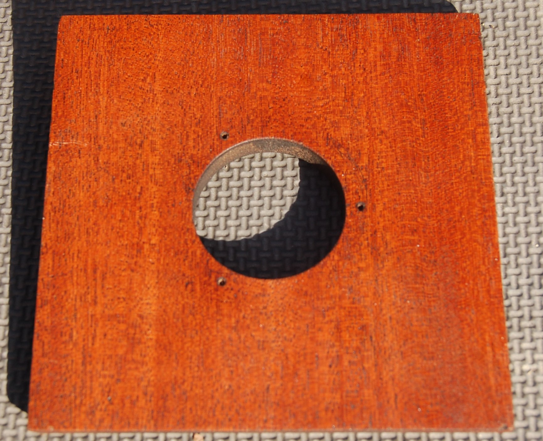 5.2" x 5.2" solid mahogany lens board for some Burke & James 4x5 or 5x7 view cameras