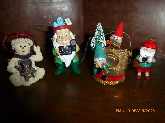 I have collected these five festive photography tree ornaments through the years. It is time to share them. Note that the second one flashes. See additional photograph