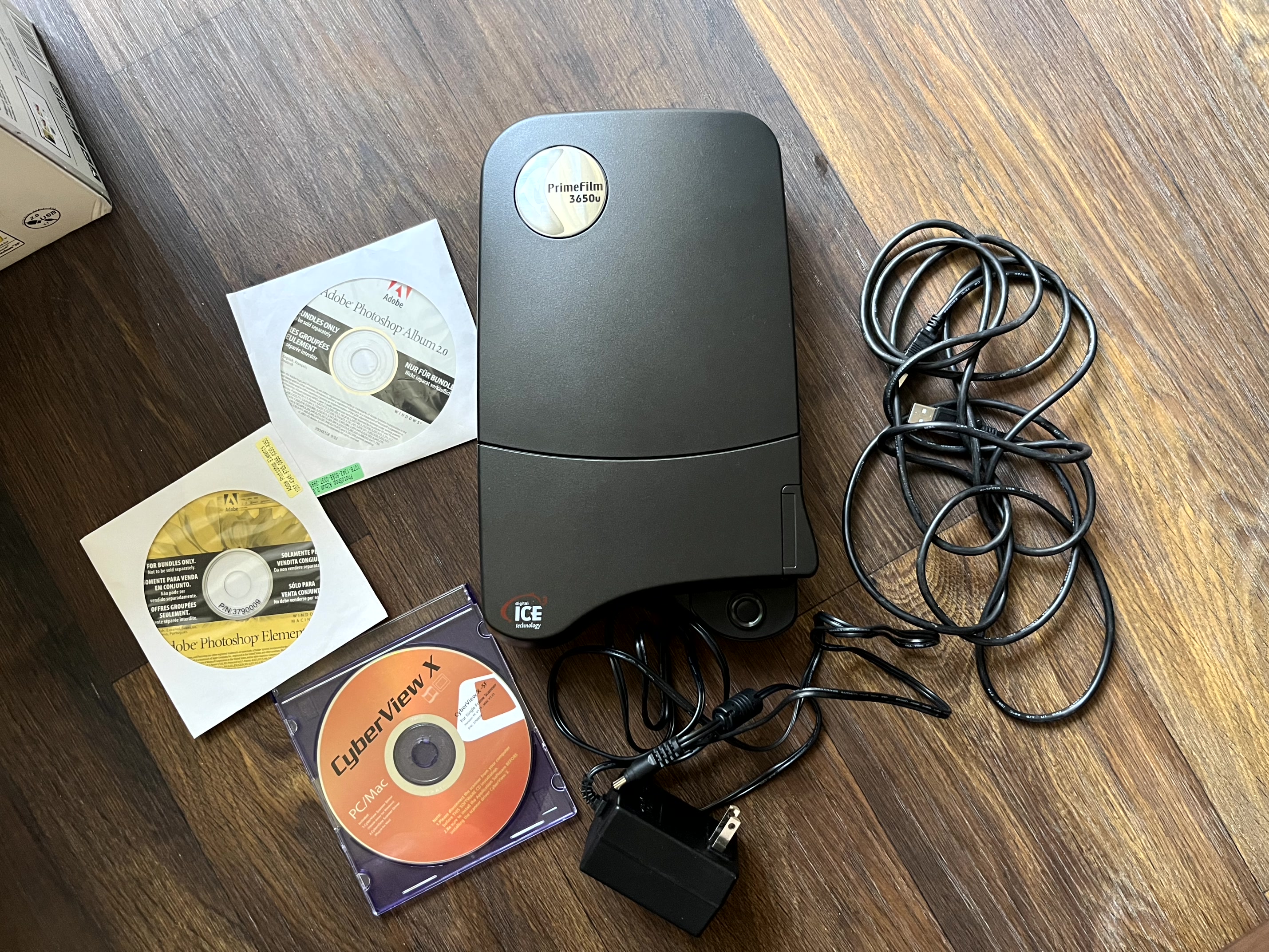Selling my 35mm film scanner. Works via USB, 3600 dpi, has ICE (dust removal) that runs at the same time as the scan. Used with uncut slide film, super simple operation. Original software included, but I used it with VueScan, the scanner's physical button worked, so I didn't even need to look at the screen. You just need to move the film to the next frame and press the button.