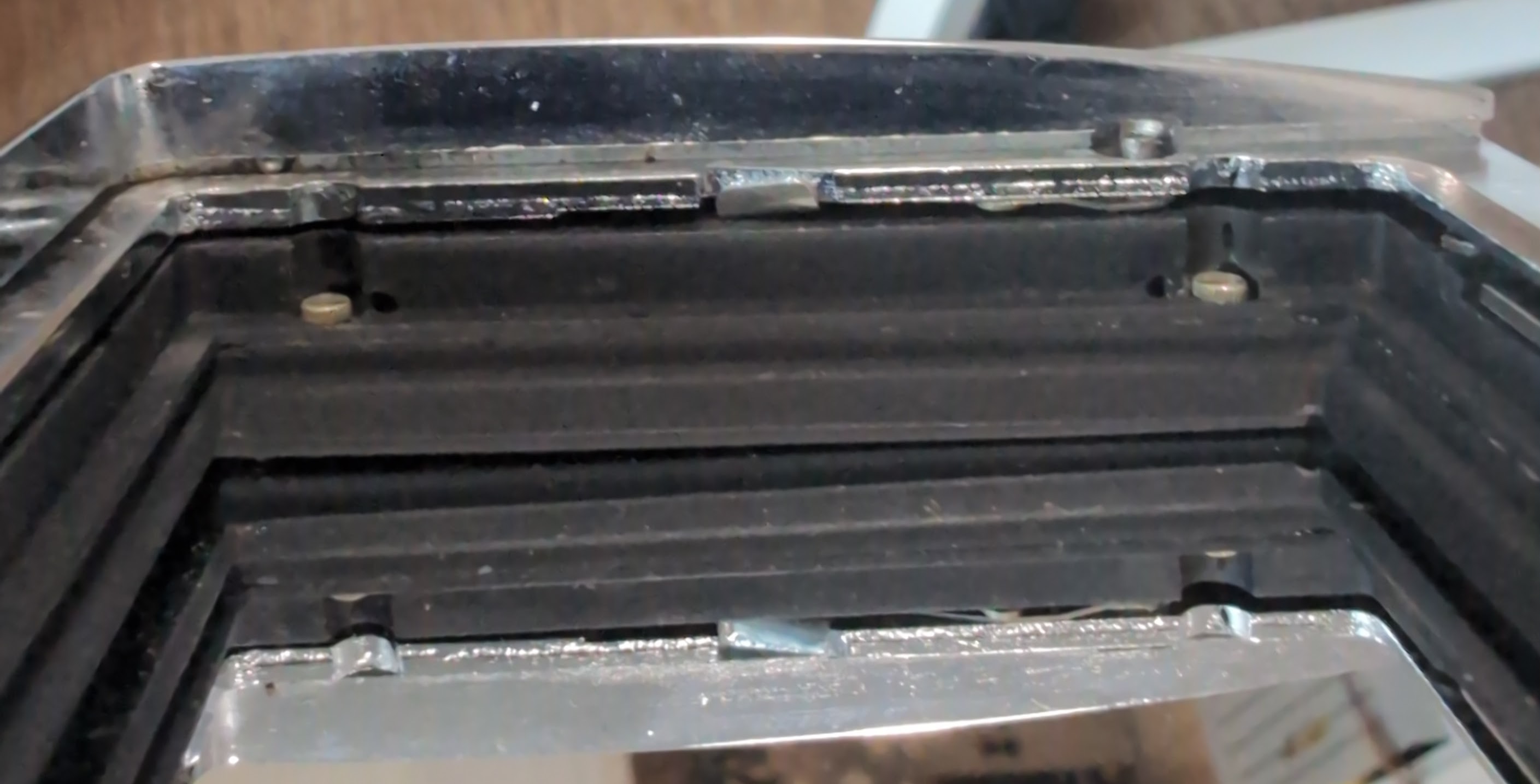 Another user on another forum posted a picture of their mirror and it has a similar lean at the front, and even more so than mine. They haven't noticed any light leaks so this may be a red herring and it might just be down to me needing to properly push the latch across.