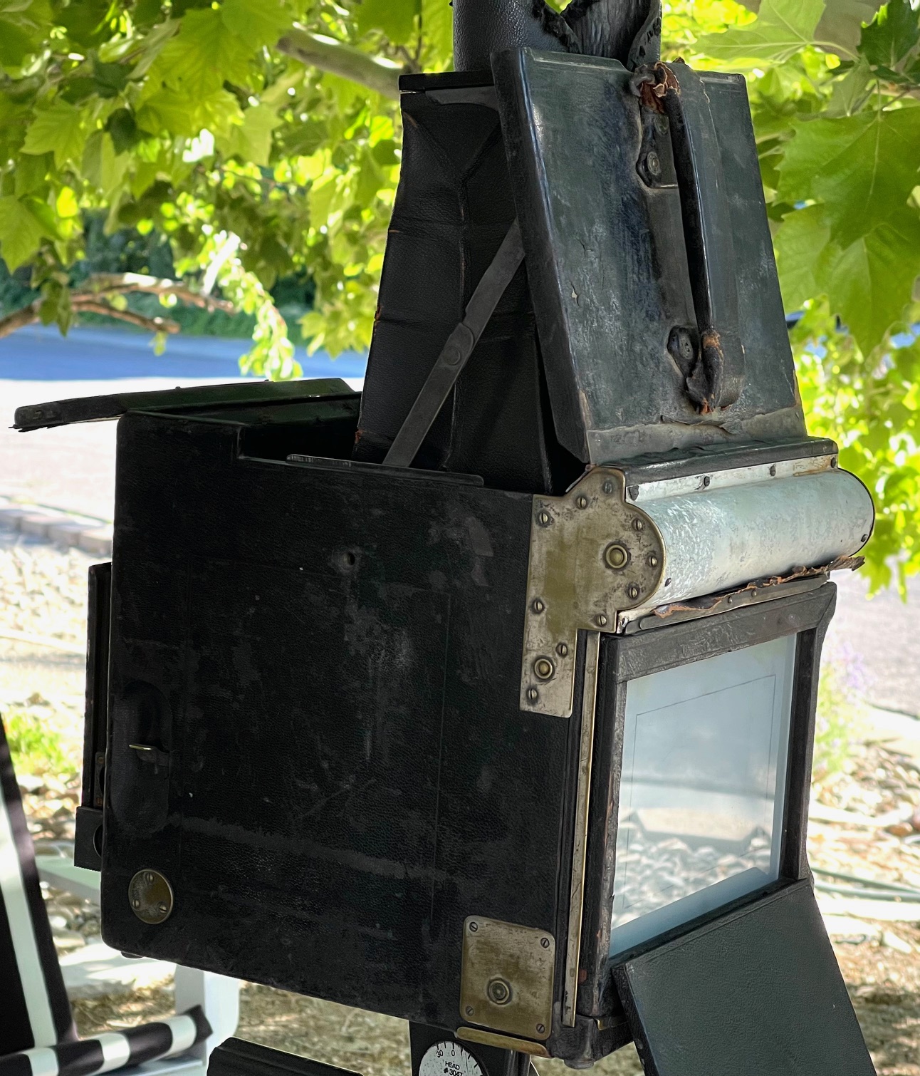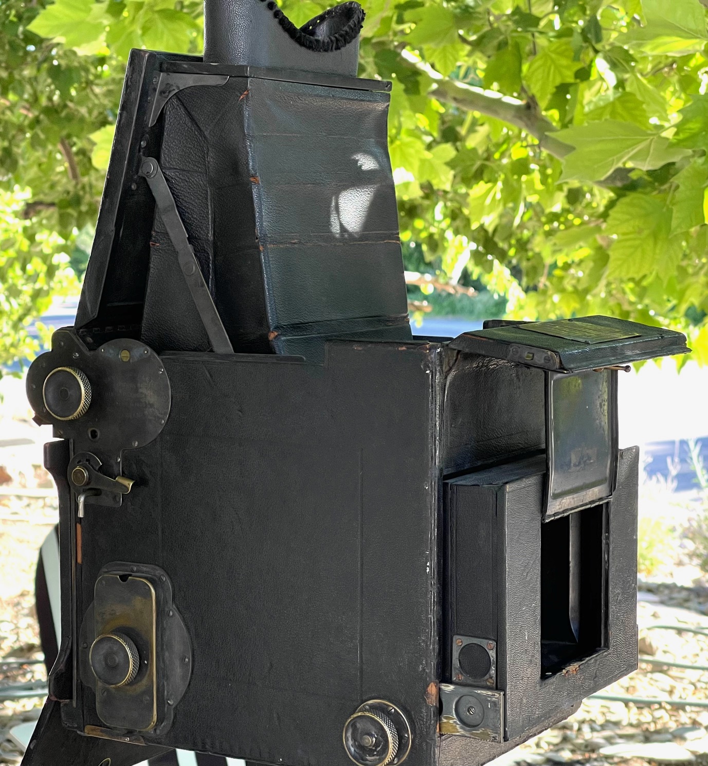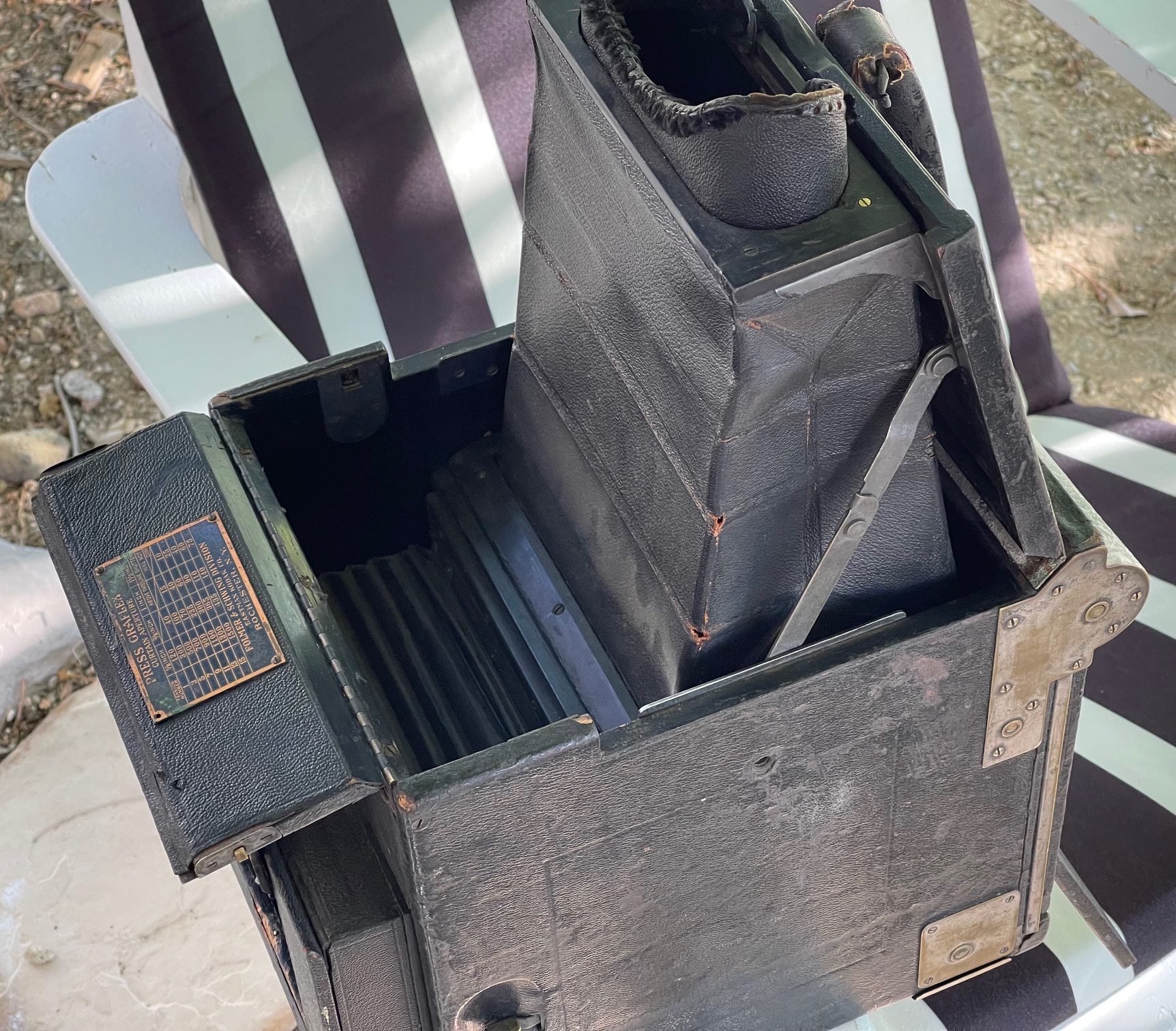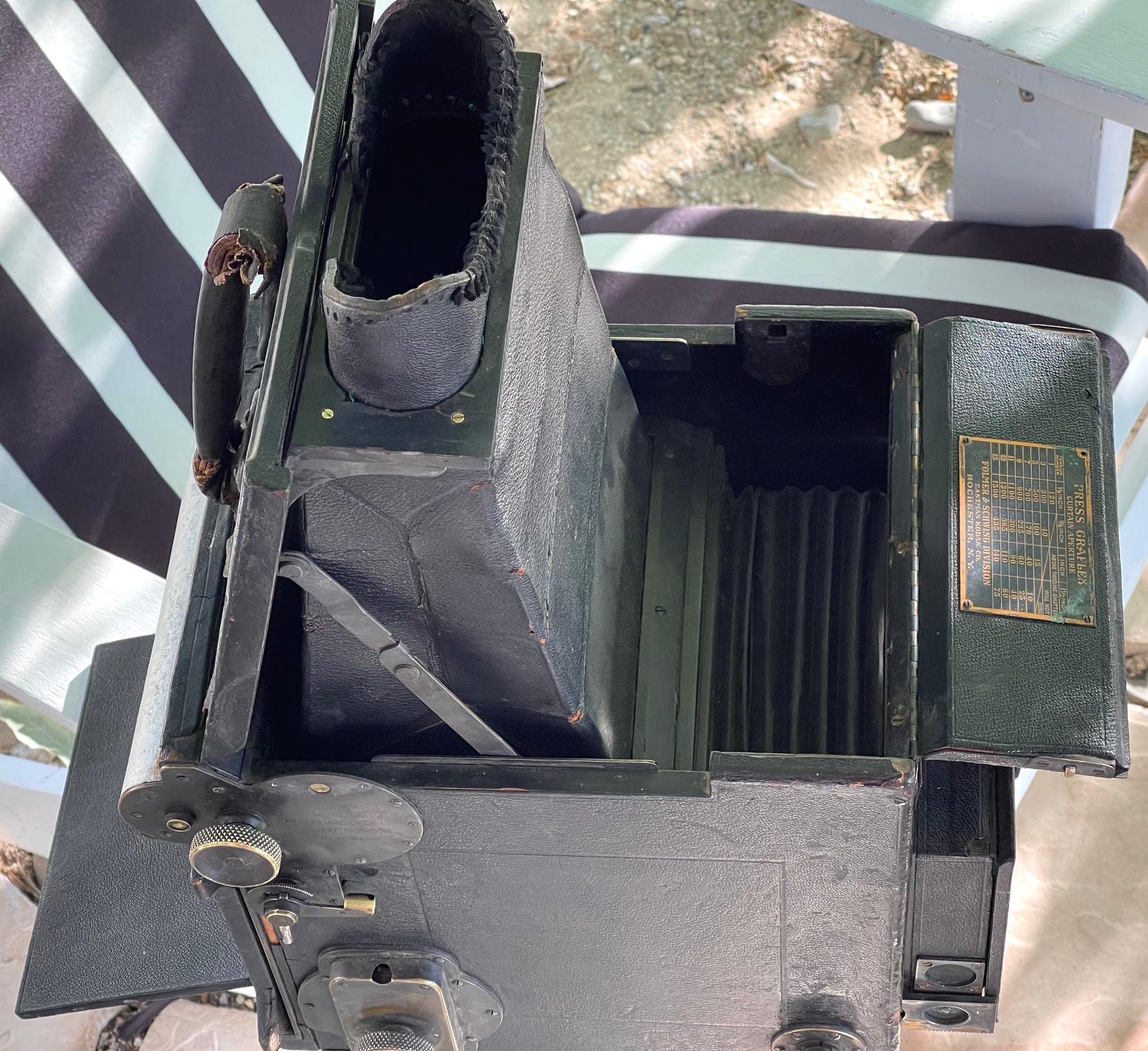 Easy restoration for someone who knows these beasts. Shutter curtain is intact and fires but the latch and trigger mechanism isn't working. The mirror doesn't latch up and release. But the final image is from a movie I made of it firing at the 1 1/2" point of the curtain.