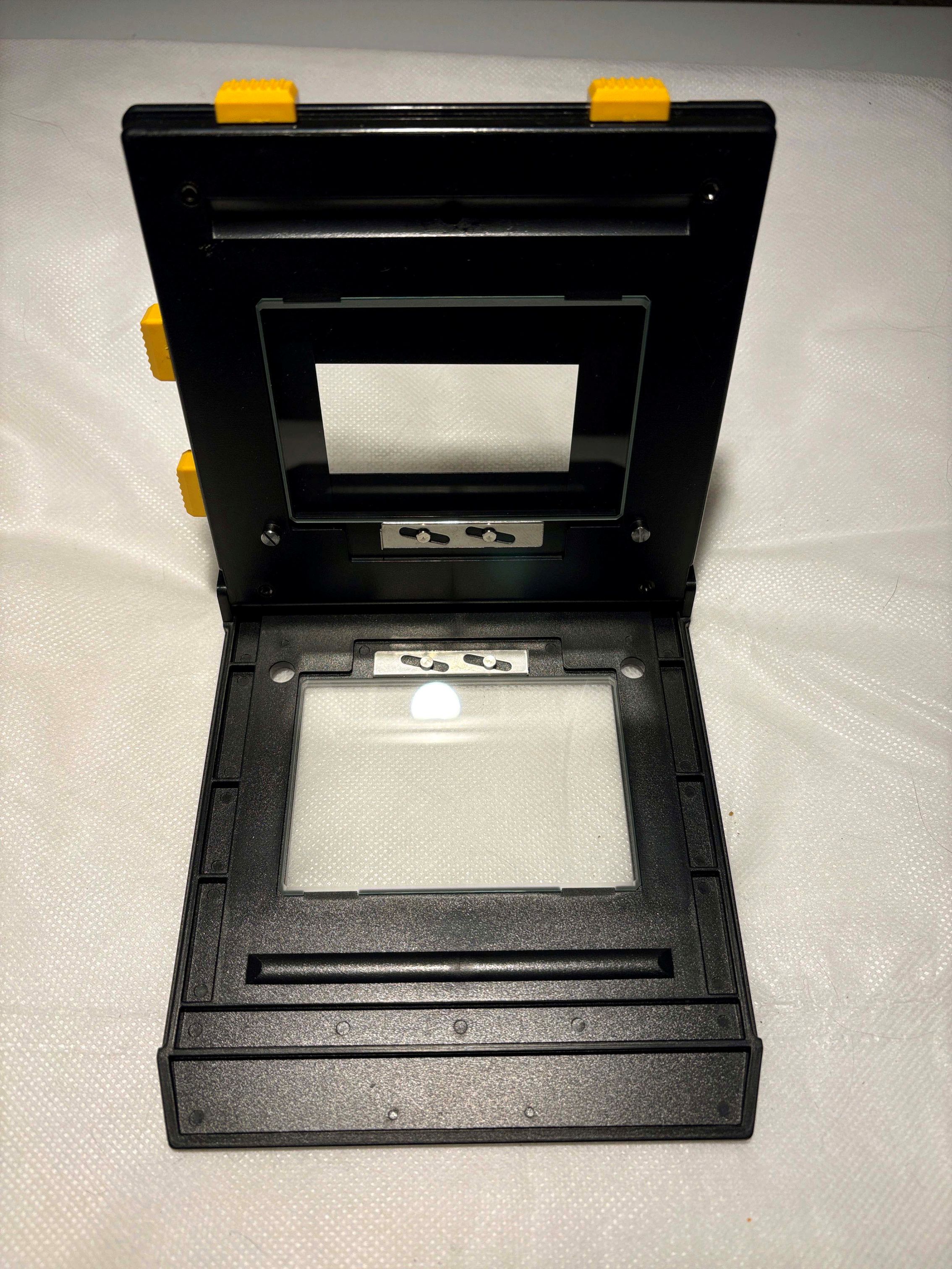 LPL 00100 6x7 Universal Glass Carrier with adjustable masking blades. Blades adjust up to 6x7cm. This appears to be new in box. It came to me years ago and I have not used it.
