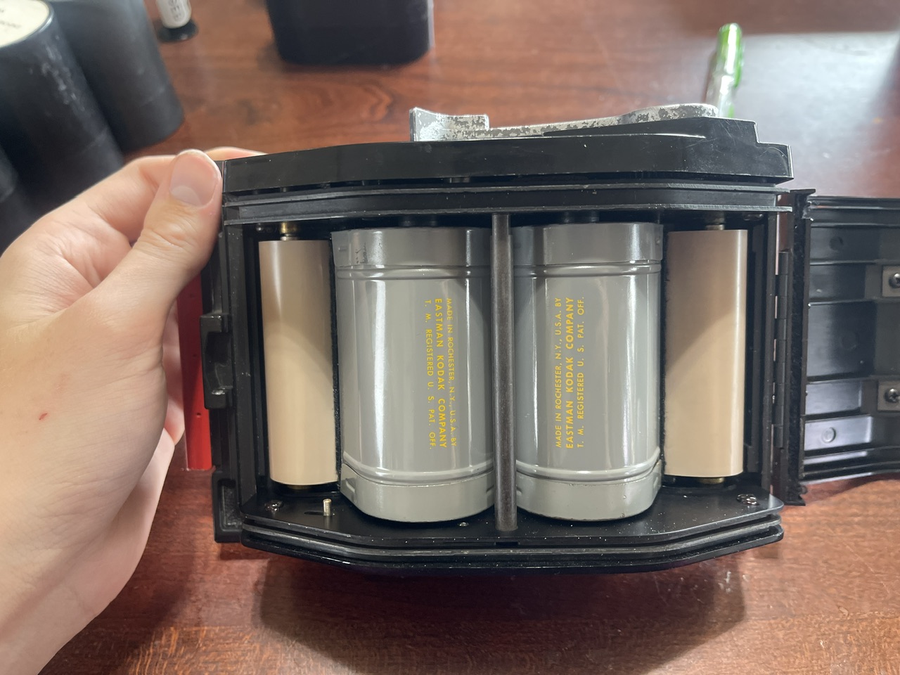 2. SOLD Plastic Besseler Color tank with three large plastic 70mm reels. I'm not sure if there are 13ft or 15ft capacity reels. I've never put more than 5 ft through each reel in one go. Asking $150 + shipping or best offer.