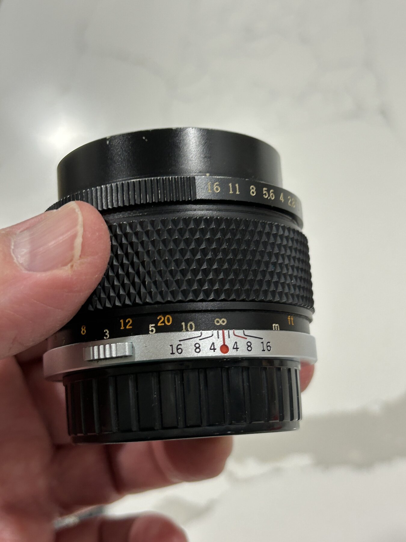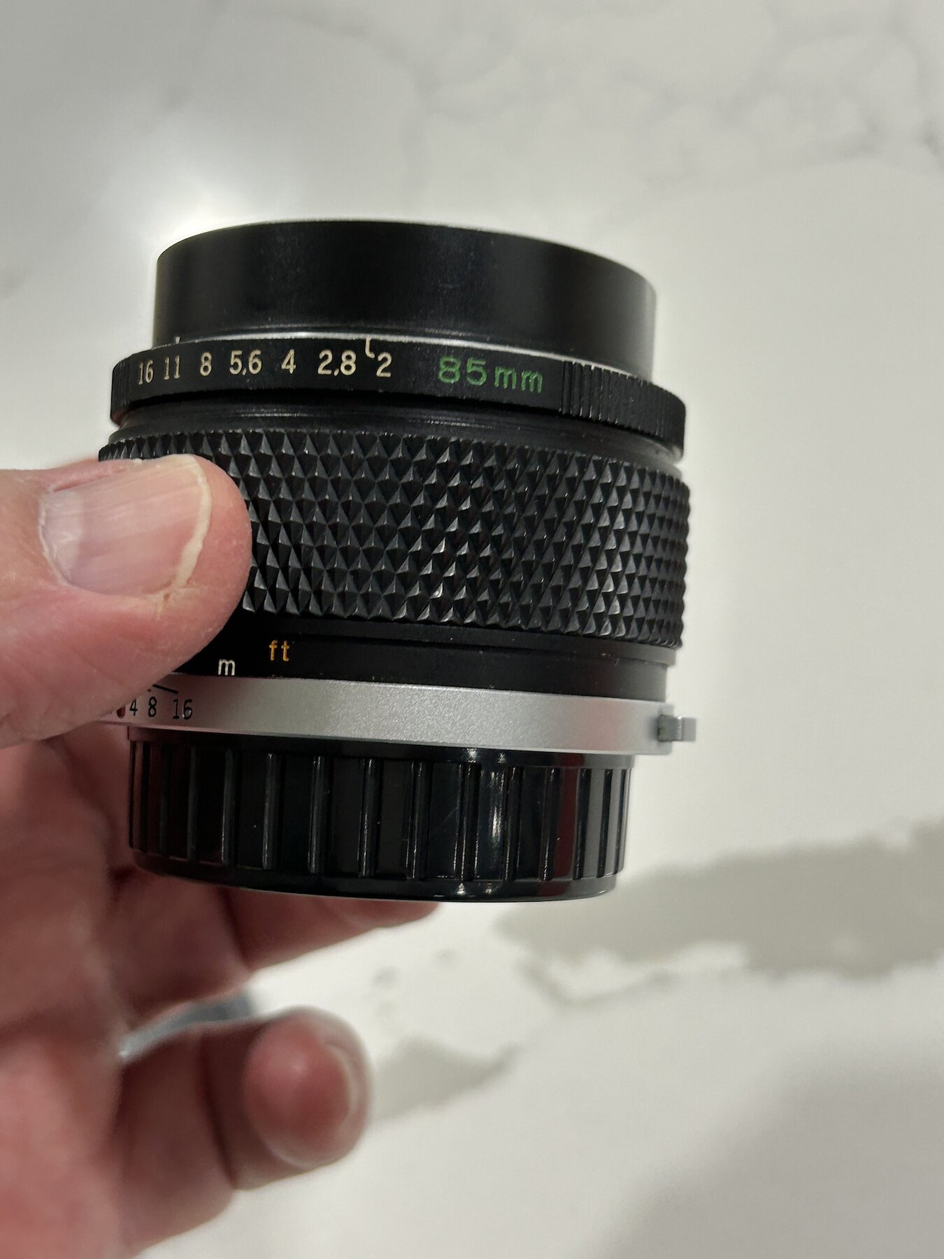 I am selling a bargain-grade 85mm F2 for Olympus OM film camera mount. This lens has a very favorable reputation among OM users.