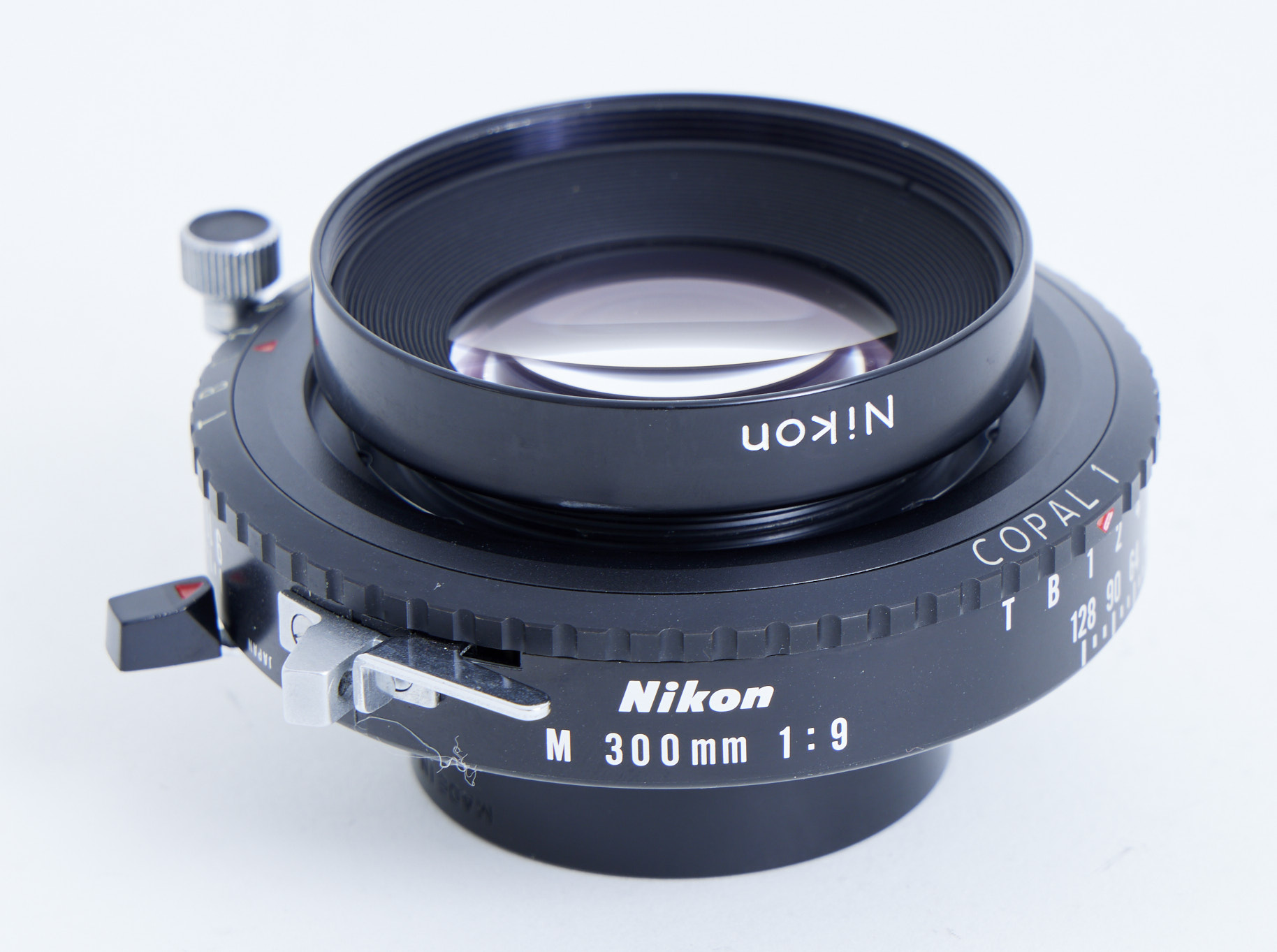 - Nikon Nikkor M 300mm, optically perfect. Copal 1 shutter good at all speeds. With caps.
