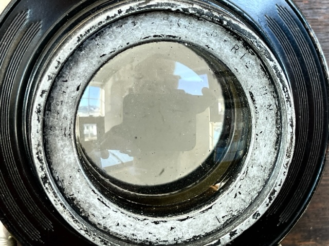 The lens shutter has been freshly serviced and is working great. The front group on the Dagor is great but the rear group has some scuffing and scratches. Almost no effect but I wouldn't point it into the sun. The brighter the highlights the more it might suffer. It's a totally capable old lens but the scuffs reduce resale value. Hard to read the lettering up front. C. P. Goerz Dagor 12" I think. You can make it out with a magnifying glass.