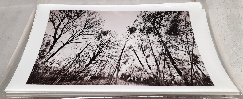 - If the paper or tape was to wet, water with glue may trickle over the surface of the print. Either use the towel to to collect it if you notice this in time, or start anew by resoaking and quick wash in water to remove the glue.