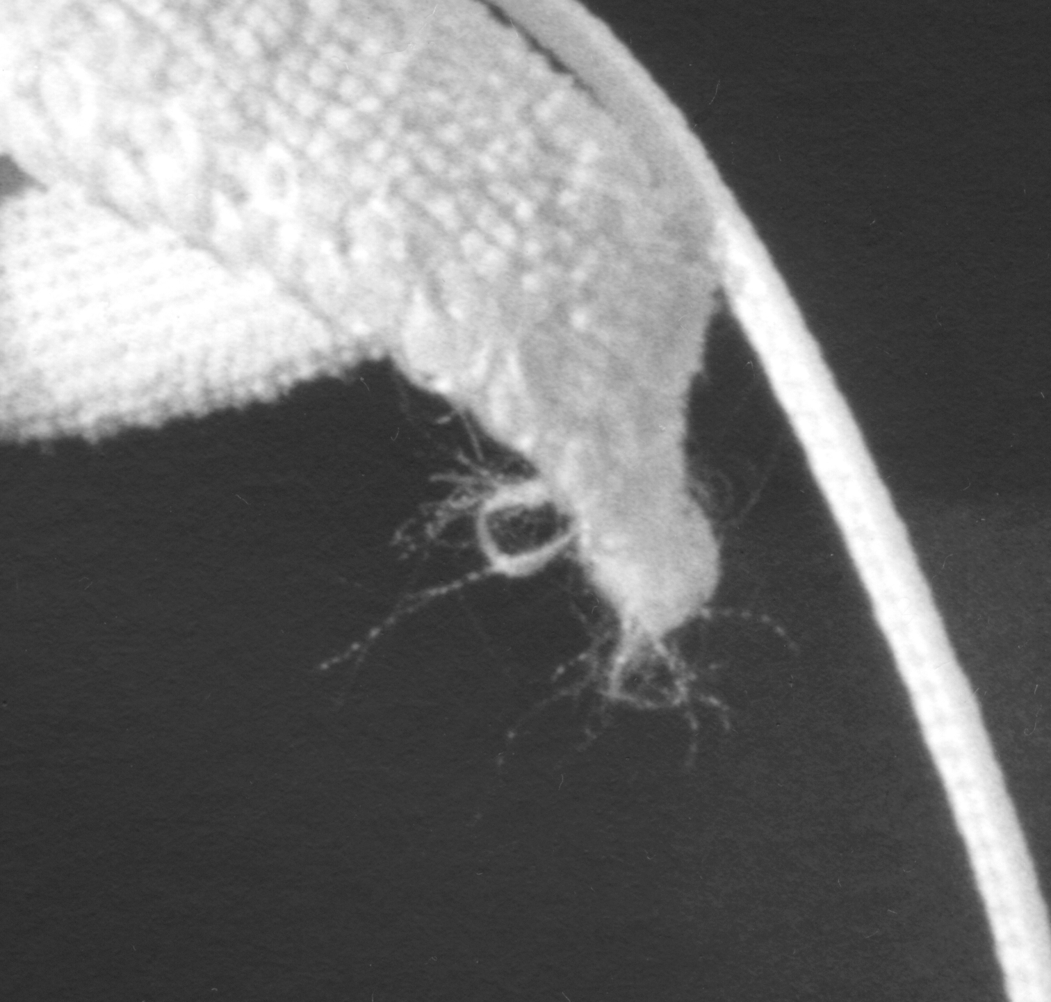 Today I finally made a test. Using a still life concoction of suitable items arranged well within the depth of field at f/16, I exposed one negative at f/22 and one at f/45 on my standard film, HP5+. My developer is D-23. My lens is a 1960s or ‘70s 210mm Komura, a lens with a good reputation but by no means a wallet-stripping super-multi-coated Apo-Sharpenar from one of the top German or Japanese makers. I set up my enlarger with my 80mm Nikkor lens from the 1970s and made 5x7 prints from a section of the two negatives at about 5x, i.e., a 20x25-inch enlargement.