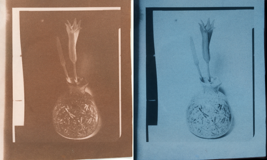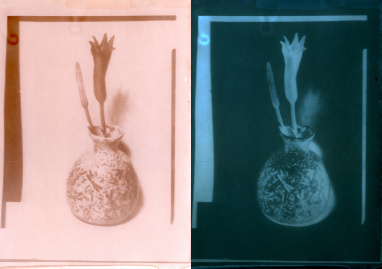 Since the original bit of film was a positive, I've included the inversion of each print scan for reference.