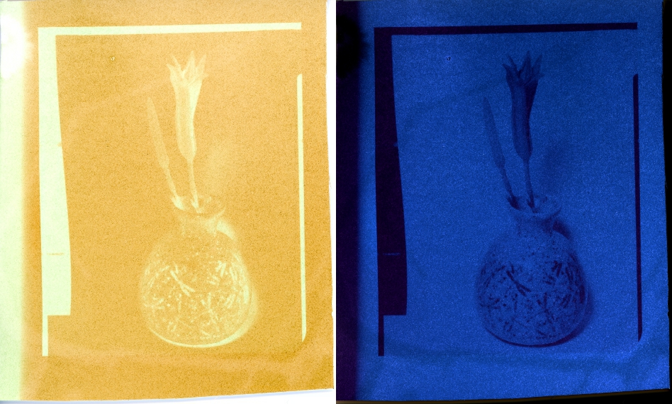 Since the original bit of film was a positive, I've included the inversion of each print scan for reference.